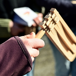 Traditionell wurde mit den Ratschen der Ostergruß verteilt, um einen Beitrag für die Jungschar zu sammeln.