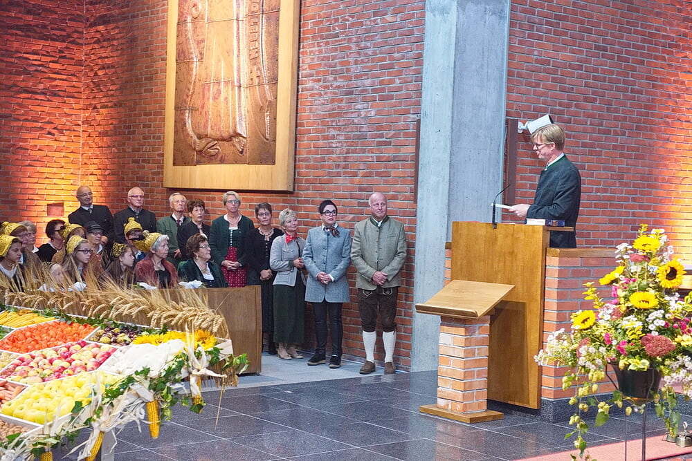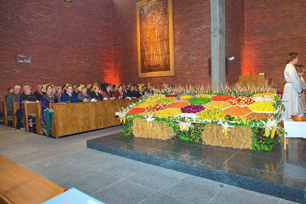 Ein Dank erging auch an die Vertreter der Ortschaften Gsteinedt und Heuweg, die die Kirche zum Erntedankfest mit einem besonders sorgfältig und modernen Mandala gestalteten.