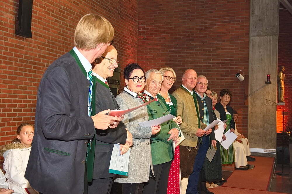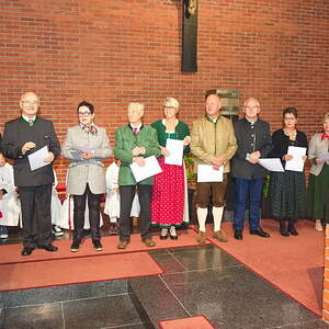 Pfusterer dankte auch dem Chor St. Josef, der das Fest wiederum mit qualifizierter Darbietung von passenden Liedern wesentlich mitgestaltete. Zu diesem Anlass gratulierte er zusammen mit Chorleiter Christoph Lenz elf Chorsängerinnen und -Sängern, denen vom Kirchenmusikreferat der Diözese wegen langjähriger Chormitgliedschaft ein Ehren-Diplom überreicht wurde.