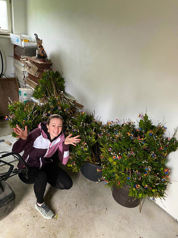Unter größter Motivation wurde vier Stunden lang gebunden, wobei ca. 230 Palmbuschen das Ergebnis waren.