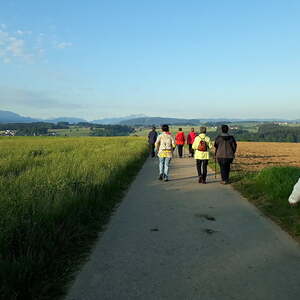 Nach einer kurzen Begrüßung mit dem Text „WACH SEIN“, gingen wir über Stöfling und auf einem schönen Waldweg auf den Kohberg. Über die B1 zum Marterl und hinunter zum Weißböcksteg.