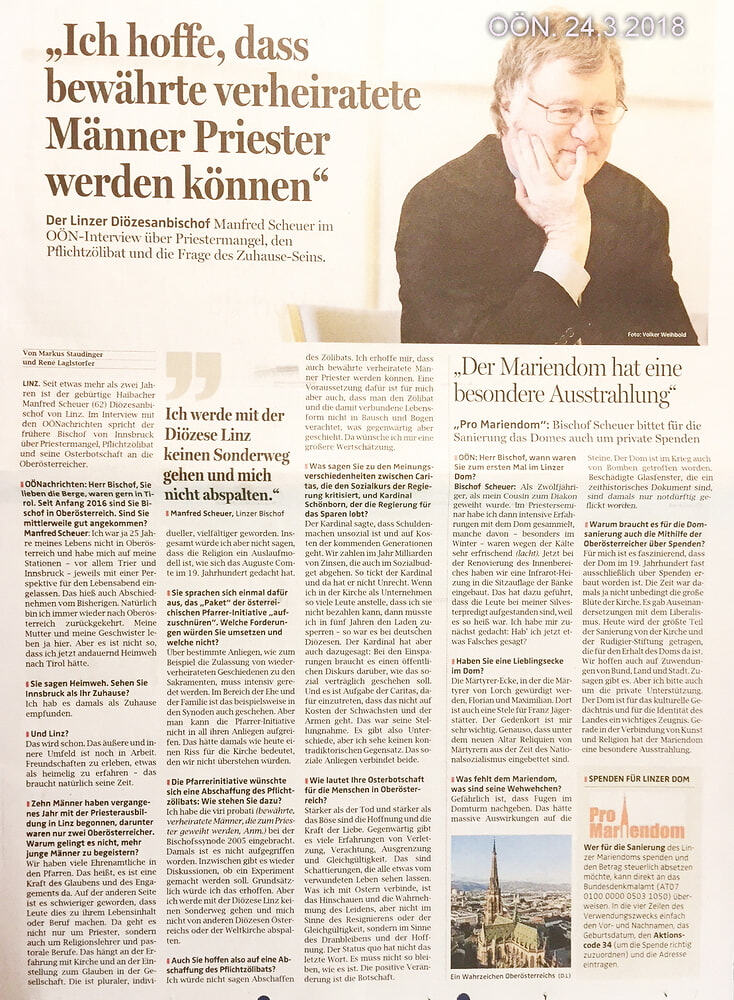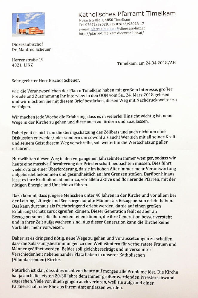 24. 04. 2018 - Es folgen die Kopien des von den Mitgliedern des Pfarrgemeinderates unterfertigten Schreibens sowie des Interviewes in den OÖ.Nachrichten: