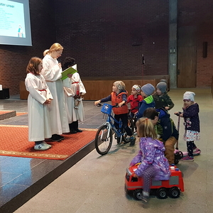 Der Abschluss war ein besonderes Highlight. Die Kinder brachten von zu Hause ihre Fahrzeuge mit, die bei einem „Segen to go“ gesegnet wurden. So rollten Fahr- und Laufräder, Rutschautos und Trettraktoren durch die Pfarrkirche.