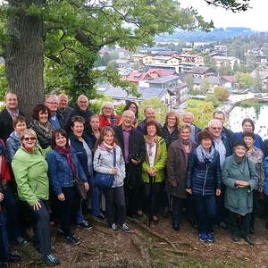 Nach dieser geistigen Einstimmung und auf Grund der Witterung erforschten die Sängerinnen und Sänger nach einem guten Mittagessen den Ortskern von Mattsee mit der „Erwanderung“ des Schlossberges und damit einer schönen Aussicht über das Gebiet rund um den Mattsee. Mit einem abschließenden gemütlichen Beisammensein in einem Kaffeehaus fand dieser verkürzte Ausflug seinen wie immer harmonischen Ausklang.