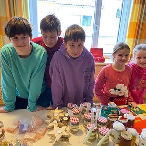 Dabei durften unsere jüngsten Jungscharkinder die von der gesamten Jungschar gebastelten Weihnachtsartikel und selbstgebackenen Kekse verkaufen.