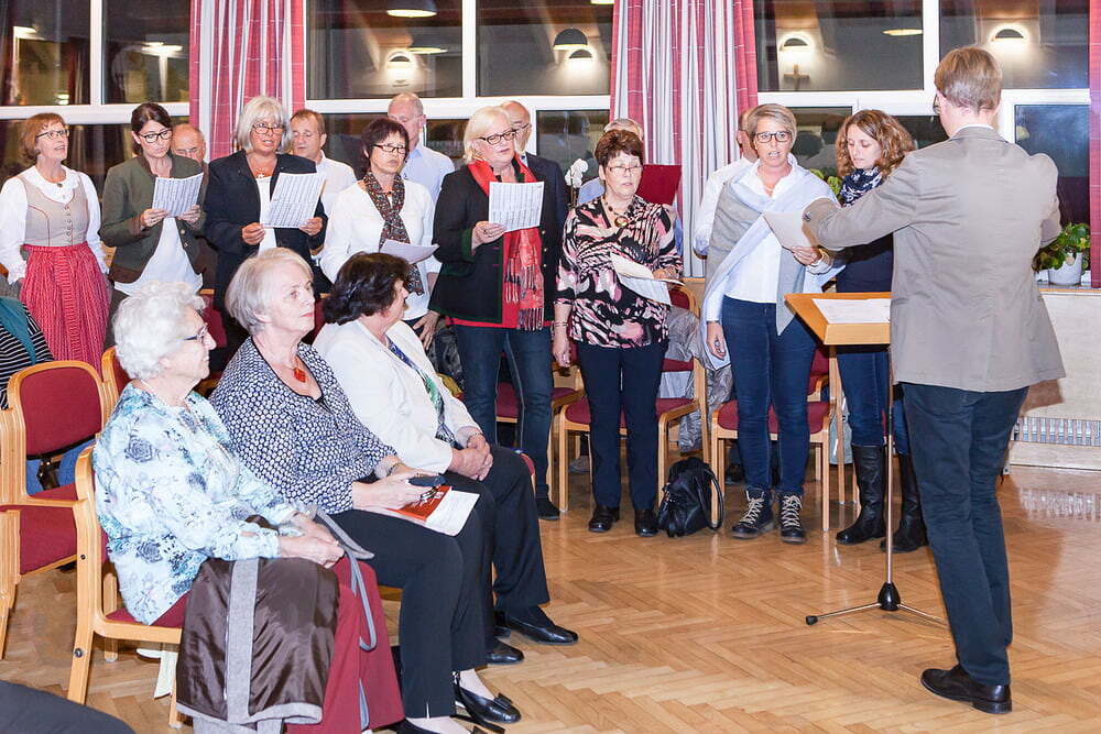Nach jeweils drei Autorinnen mit je drei bis vier Lesungen unterbrach der Timelkamer Kirchenchor, dessen langjähriges Mitglied Ilse Kiener als eine der Autorinnen und Mitglied des Mundartkreises für den Chorauftritt zeichnete, mit heiteren Volksliedern den Ablauf und sorgte so seinerseits auch für einen harmonischen Gesamteindruck dieses stimmungsvollen Abends.