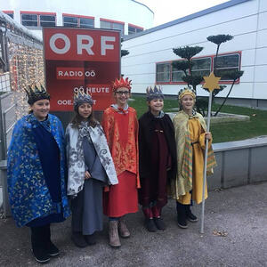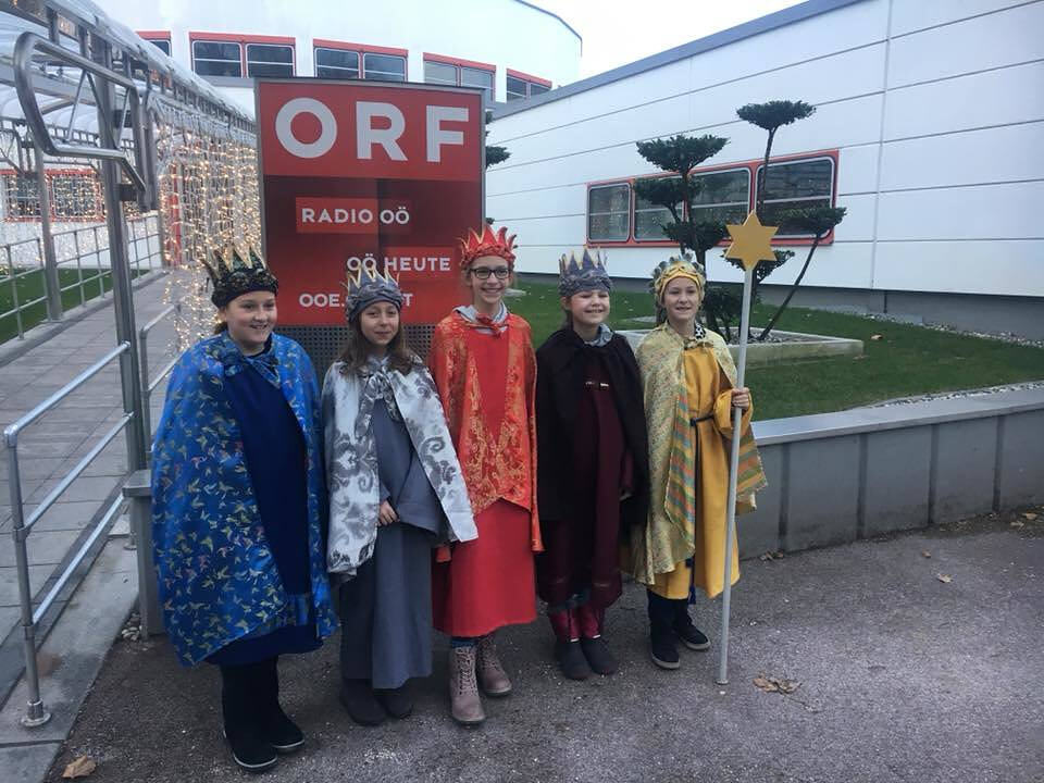 Am 27.12.2018 um 7.00 Uhr starteten wir unsere Reise ins ORF Studio Oberösterreich. Dort durften wir als Sternsinger im Radio voller Freude unsere Sprüche und Lieder präsentieren.