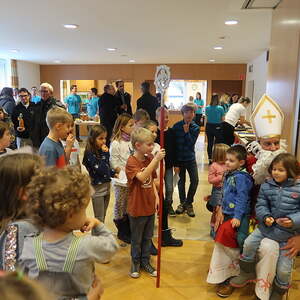 Jede Gruppe hatte sich eifrig ins Zeug gelegt und gebacken und gebastelt. So konnten wir wieder einiges anbieten: Engerl aus Holzscheiten, Punschkonzentrat, Seifen und vieles mehr wurden neben den selbstgebackenen Keksen ausgestellt. Ein Teil der Jungscharkinder durfte die Kunstwerke verkaufen. Höhepunkt war sicherlich der Besuch des Nikolaus, der für die großen und kleinen Besucher eine kleine Überraschung mitgebracht hatte.