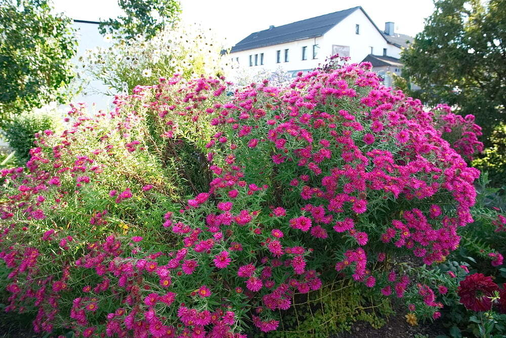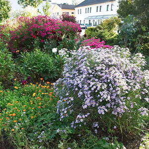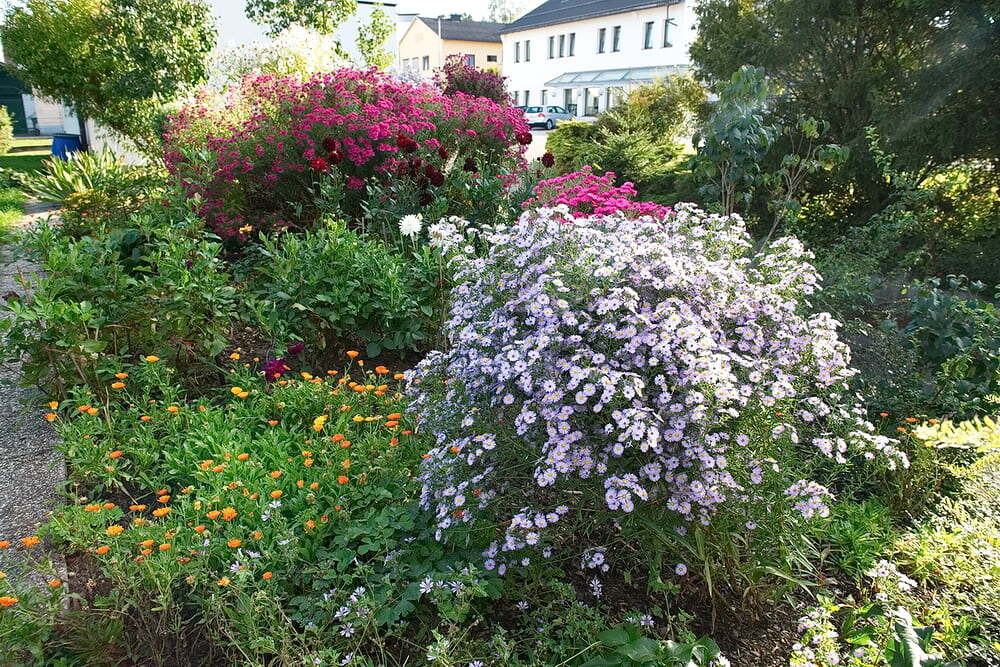 Es handelt sich um die Gartenanlage im Pfarrgarten zwischen Pfarrhof und der Pfarrgarage, die gerade jetzt zur Erntezeit seine volle Pracht entfaltet.