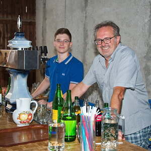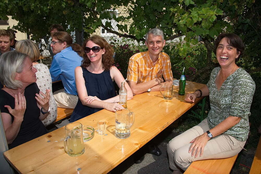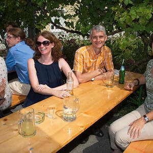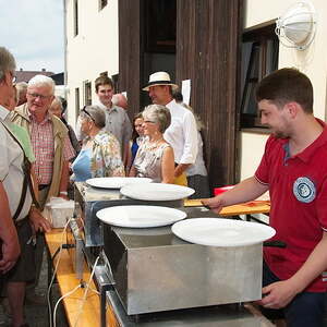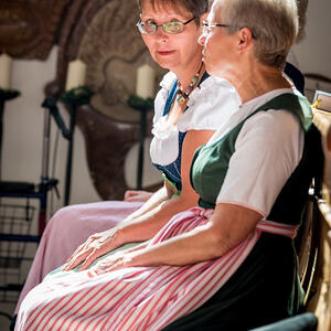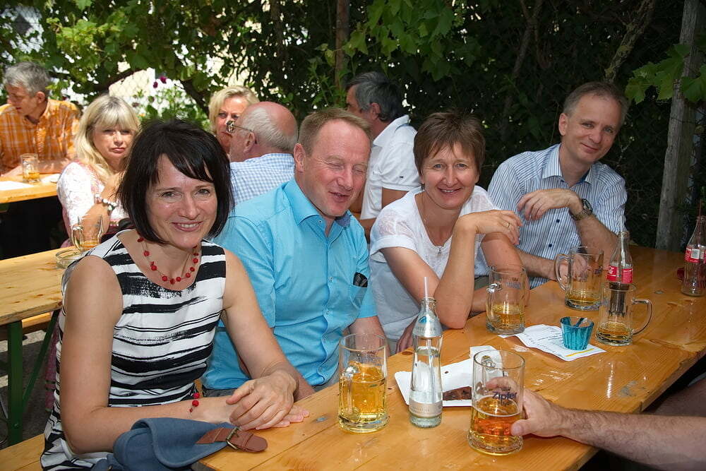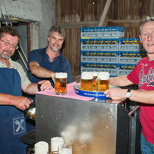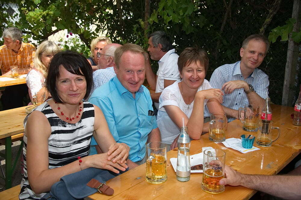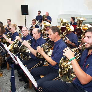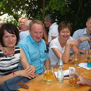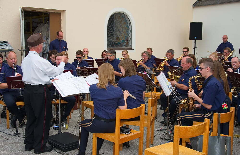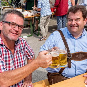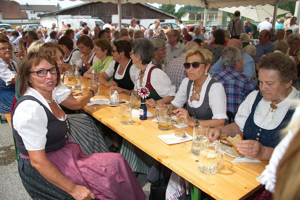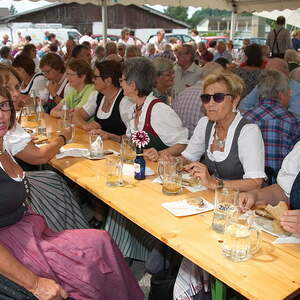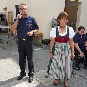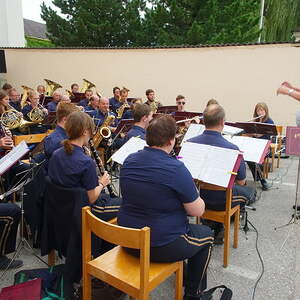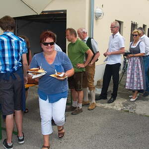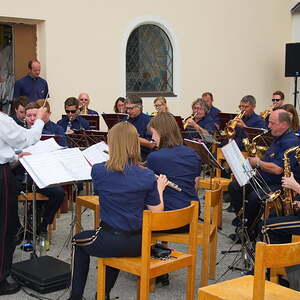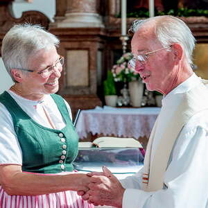 Natürlich wurde beim anschließenden Frühschoppen der Marktmusik Timelkam im Klosterhof noch bis in den Nachmittag weitergefeiert, wobei sich als besonderer Gratulant auch noch Altbischof Ludwig Schwarz, SDB., einstellte.