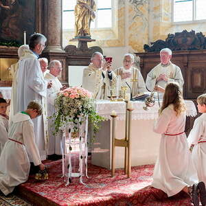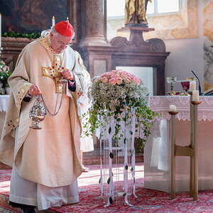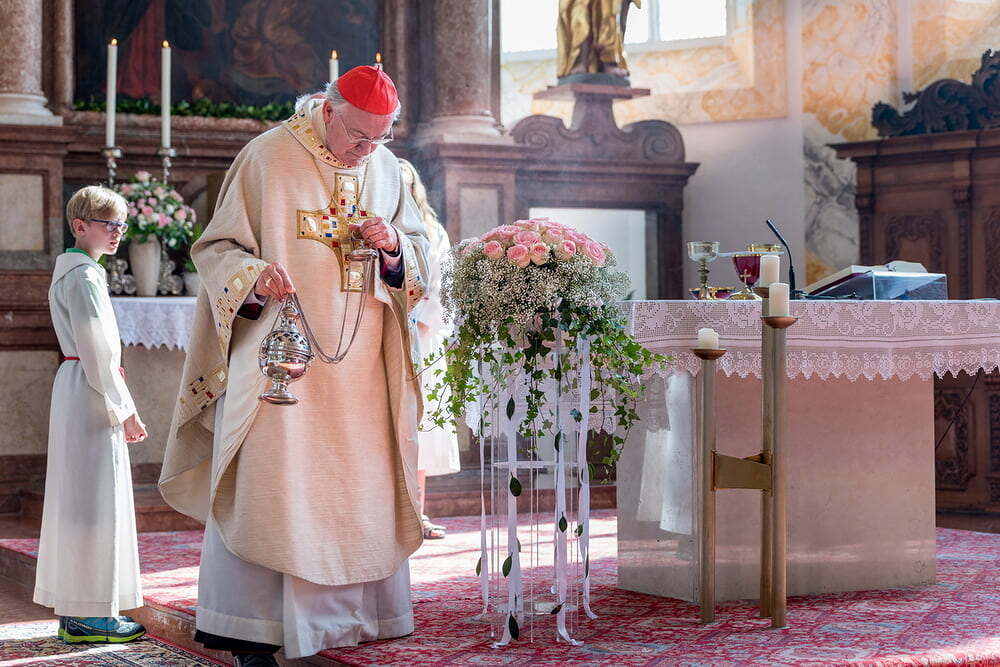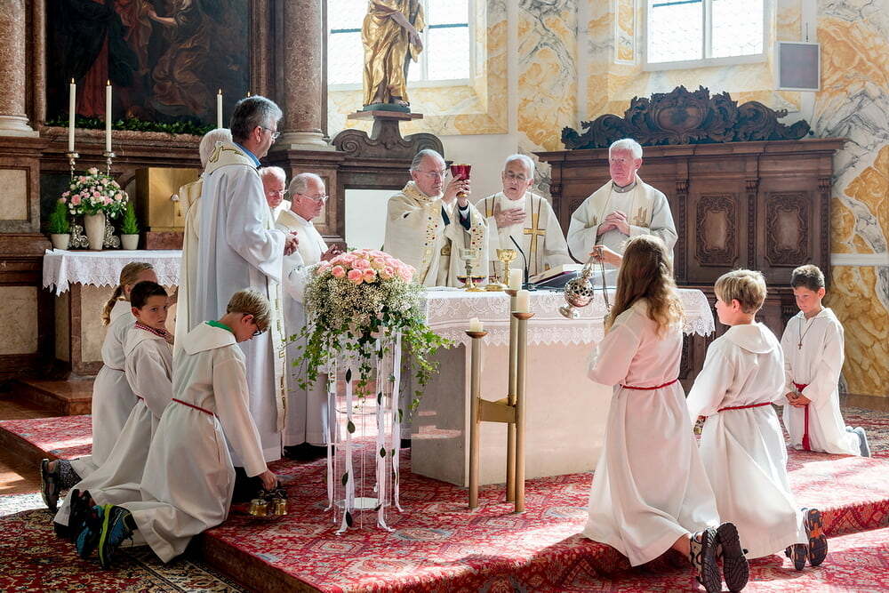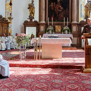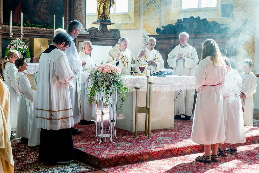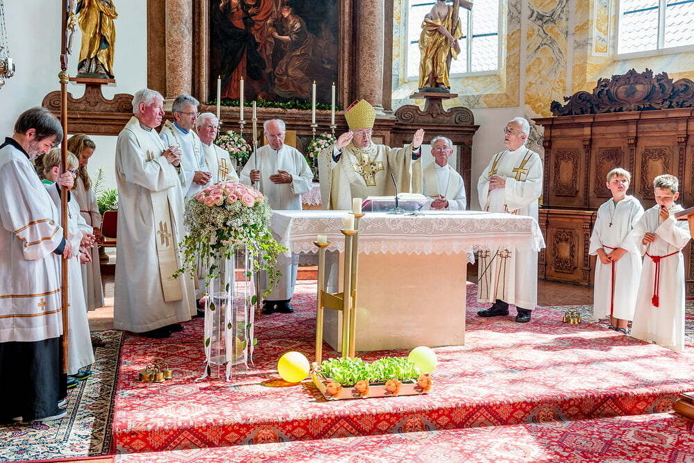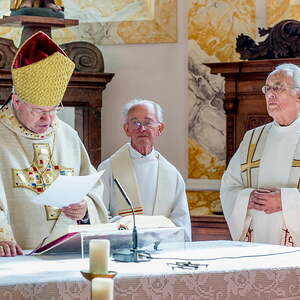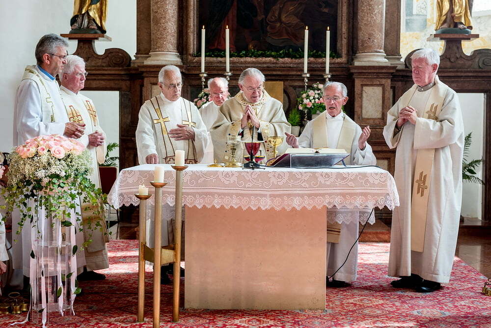 So feierte die Festmesse kein Geringerer als Alt-Erzbischof Alois Kothgasser in Konzelebration mit Provinzial P. Petrus Obermüller SDB, Studienkollege Dr. Günther Leiner, P. Franz Ruthofer SDB und Pfarrer Josef Kramar.