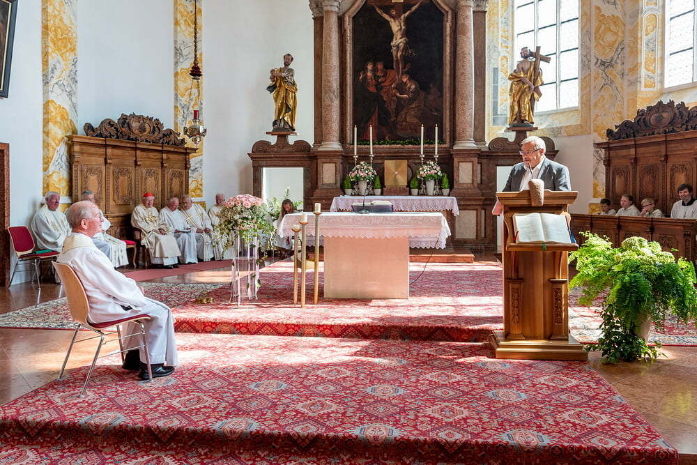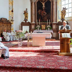 Erzbischof Kothgasser ging in seiner Festansprache auf den Lebenslauf des Jubilars ein. Dieser wuchs in Kleinzell auf und war ab seinem 14. Lebensjahr auch 2 Jahre als Schafhirte im Einsatz. Seine anschließende Ausbildung als Steinmetz schloss er mit der Sprengmeisterprüfung ab und er führt sein Durchsetzungsvermögen nicht zuletzt auch auf die Härte des Granits zurück, den er damals zu bearbeiten hatte.