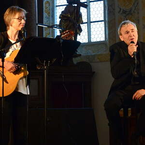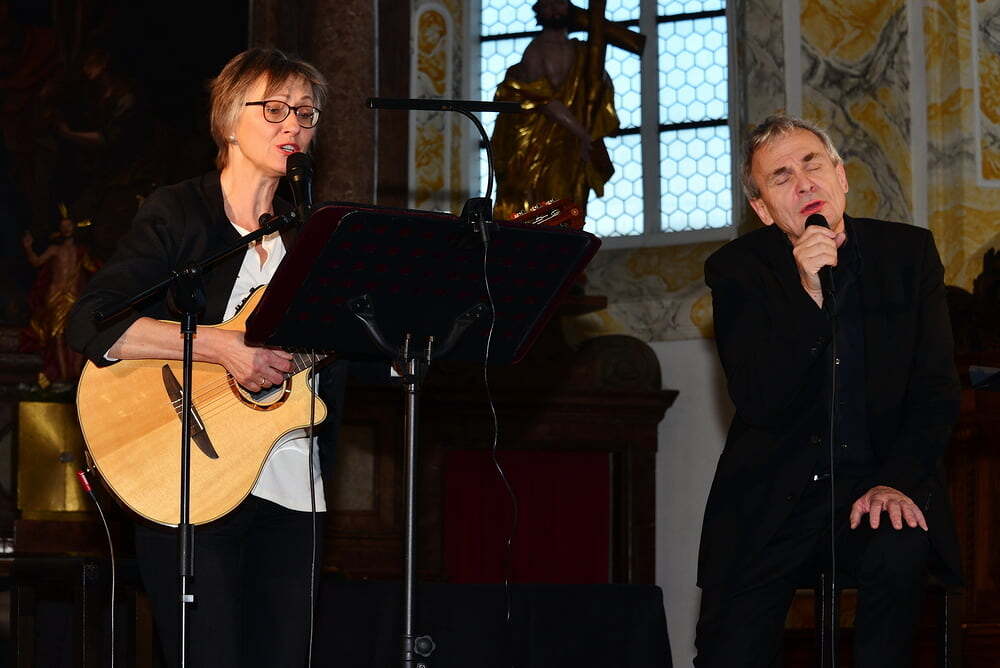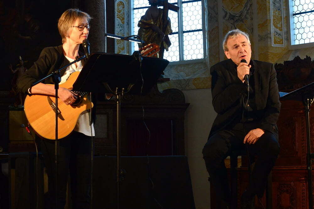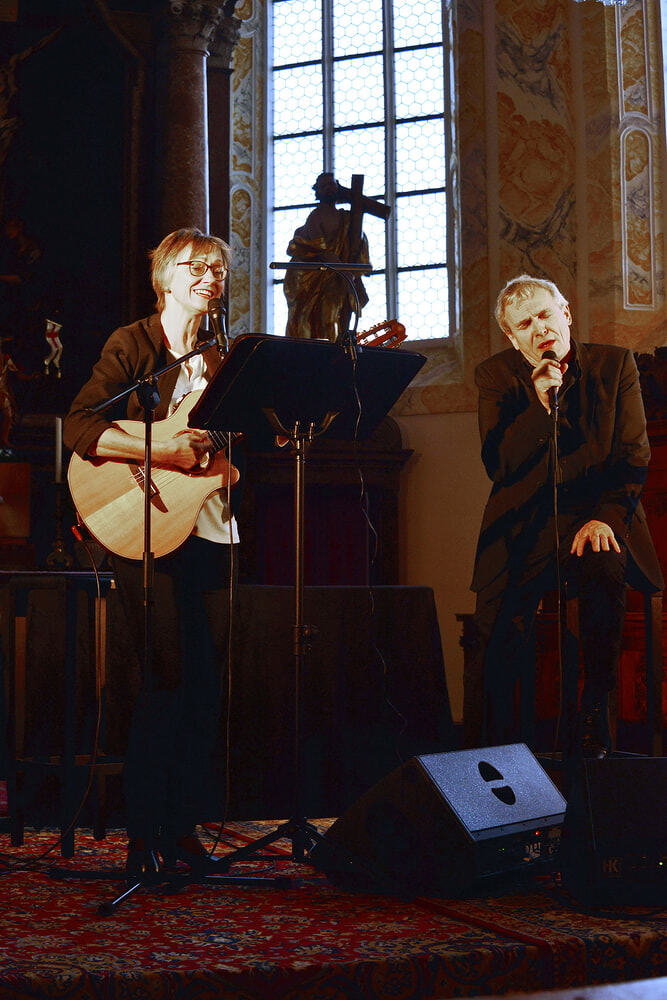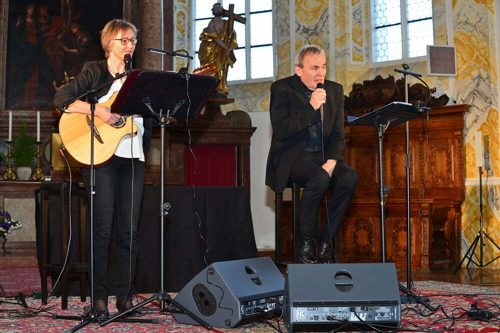 Das Künstlerduo wechselte von zeitkritischen Liedern, Gedichten und Prosastücken zu heiteren Sprüchen von Hans Kumpfmüller zum Schmunzeln und konnte dann wieder das Publikum zum Nachdenken bringen.