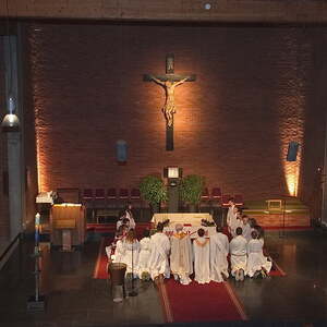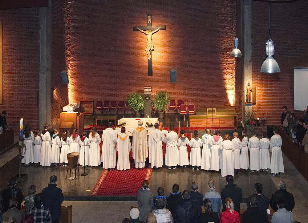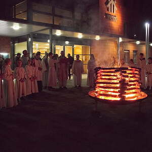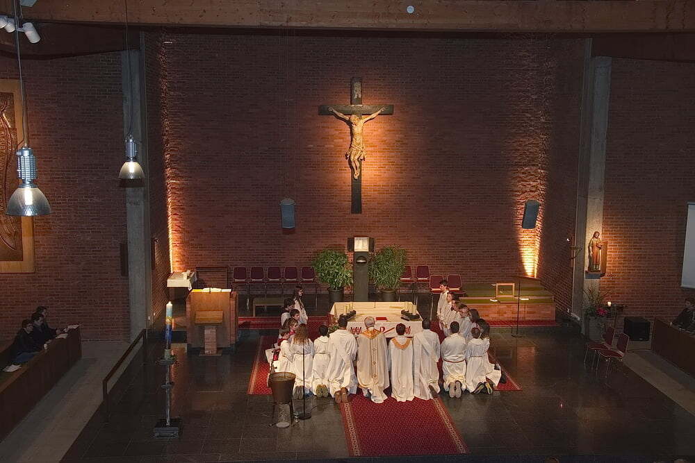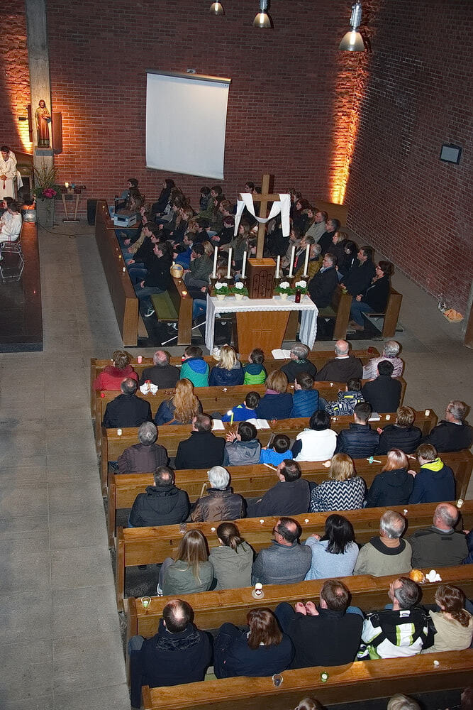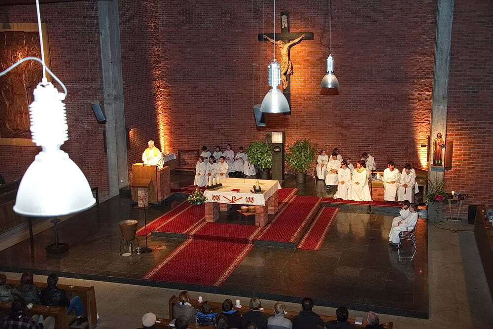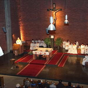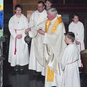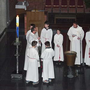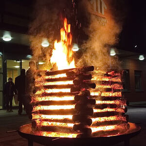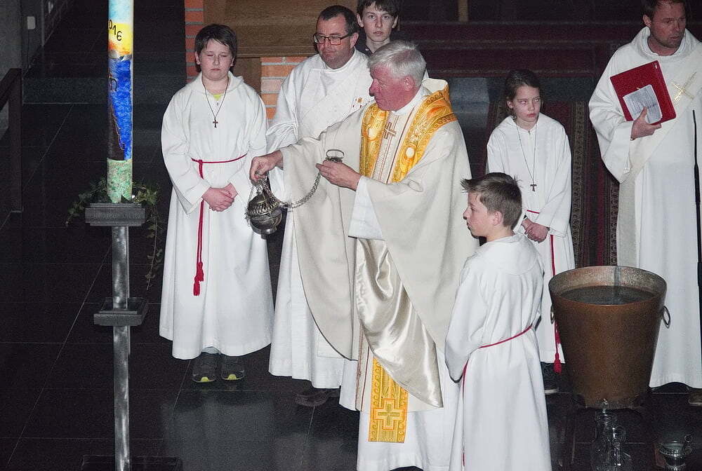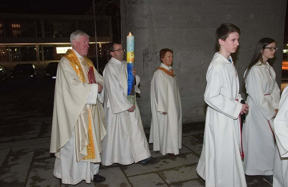 So bereiteten die Jugendlichen am Nachmittag fachgerecht einen entsprechenden „Scheiterhaufen“ vor, um ab ca. 20:00 Uhr auf dem Kirchenplatz ein beeindruckendes Osterfeuer erleben zu können, das übrigens nach der Osternachtsmesse immer noch mit einem Glutnest an dessen Mächtigkeit zu Beginn der Osternacht erinnerte.