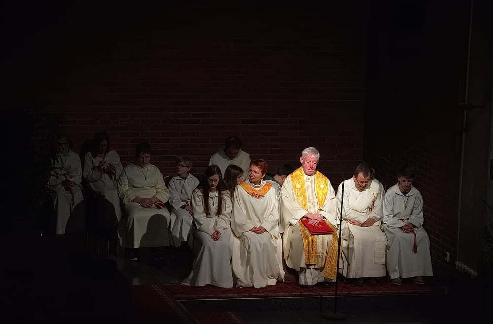 Gleichzeitig gab der Kirchenchor mit Chorleiterin Margareta Reisinger auf der Kirchenempore den vorbereiteten Liedern für die Osternacht durch eine letzte Probe den entsprechenden „Feinschliff“ für eine würdige Osternachtsfeier.