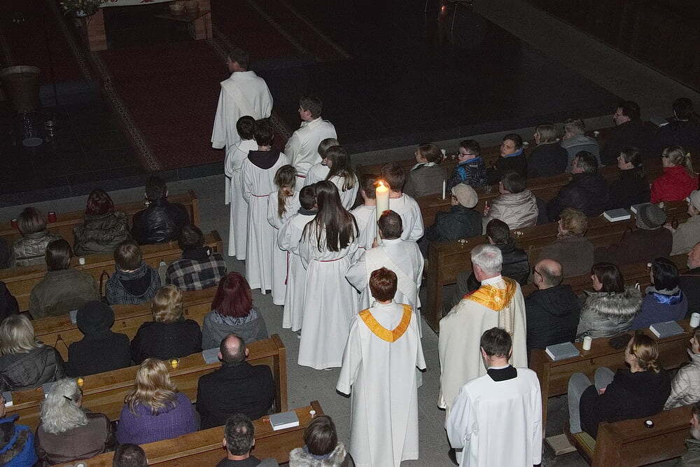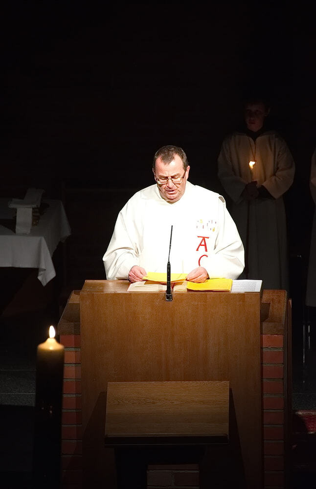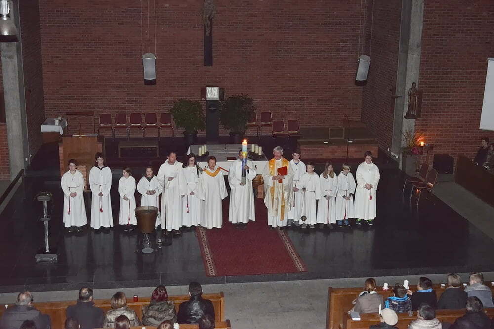 Das Osterlicht als Symbol der Auferstehung wurde vom Kirchenplatz in feierlicher Form in die Kirche geleitet. Die Bedeutung der wiederum sehr feierlichen Osternachtsliturgie wurde mit vielen Ministranten,mit Pfarrer Mag. Josef Kramar, den beiden Diakonen Bernhard Pfusterer und Herbert Seiringer sowie der Wortgottesdienstleiterin Otti Eder unterstrichen.