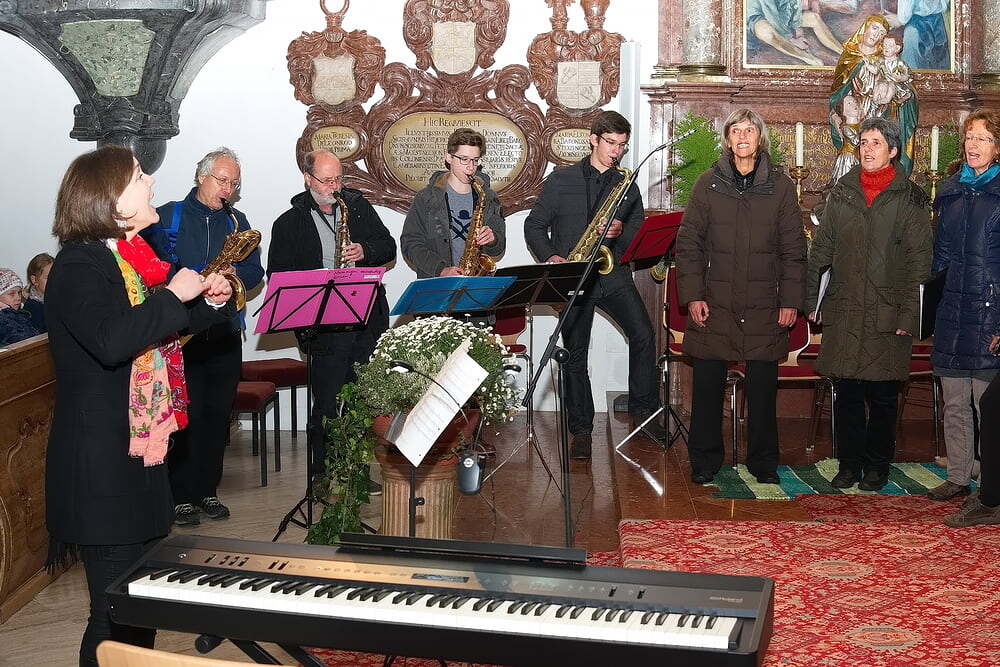 Diese bot einen würdigen Rahmen für ein Musikfeuerwerk der Spitzenklasse. Die beiden Gruppen begeisterten die Zuhörer in der vollen Kirche mit kritischen sowie stimmungsvollen Liedern von Skandinavien bis in den Kongo. Die begleitenden Texte luden zudem zum Nachdenken über den Zustand der Erde ein.
