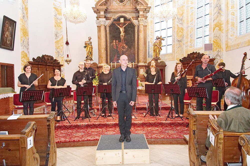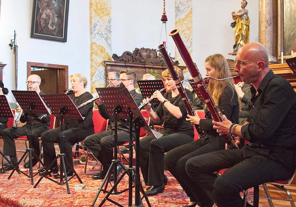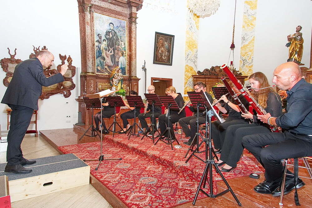 Die Mezzosopranistin Eva Leitner, eine Lenzingerin, brillierte mit drei Gesangssequenzen und nutzte zusammen mit den Bläsern die ausgezeichnete Akustik der St. Anna Kirche zu weiteren Konzert-Höhepunkten.