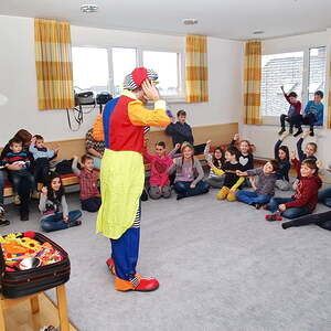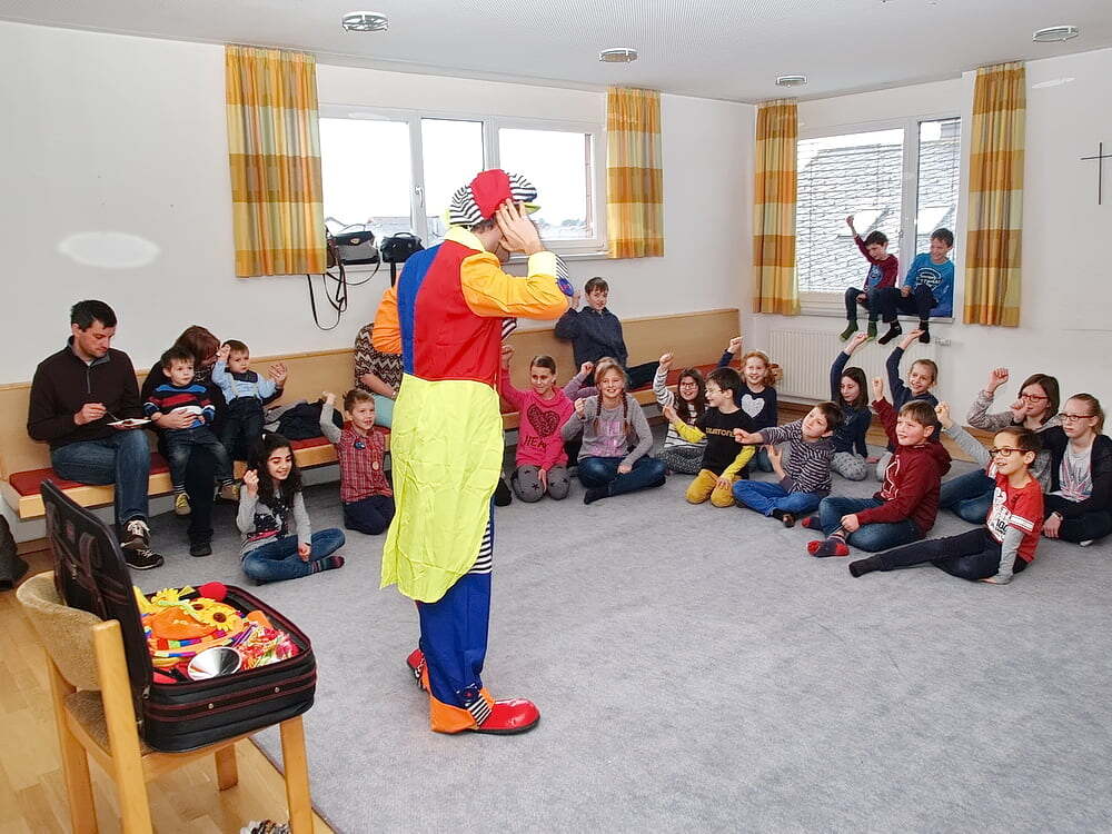 Nch der Familienmesse um 10:00 kam dann der Kasperl ins Pfarrheim und unterhielt mit lustigen Spielen und manchen Überraschungen die jungen Don Bosco Anhänger.