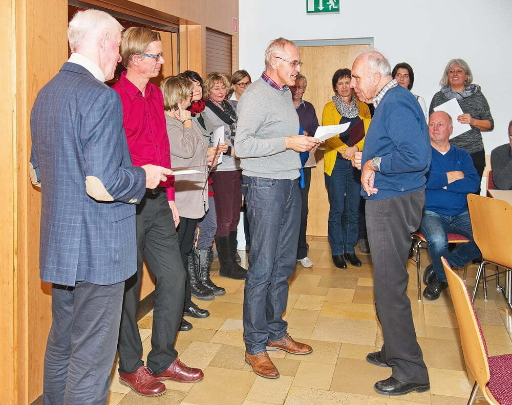 Ein persönliches Schreiben des Bischofs mit dessen Dank und Anerkennung konnte an den Sänger Josef Stürzenbaum übergeben werden, der sich nach fast 50 Jahren als Chorsänger in den “Ruhestand“ zurückzog.