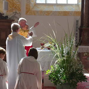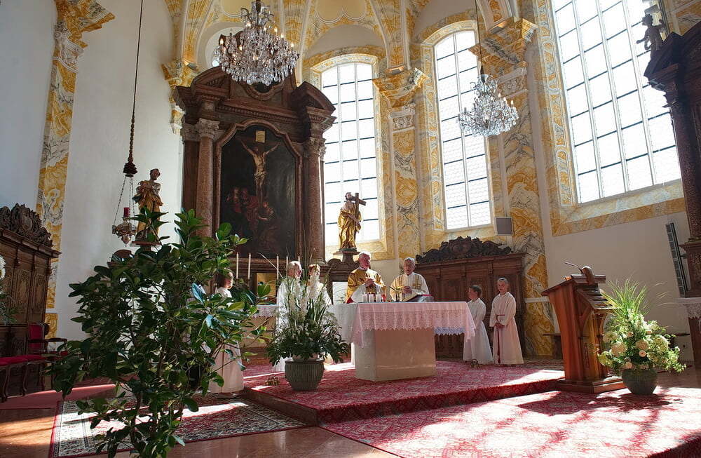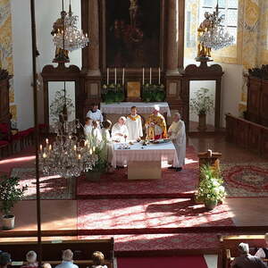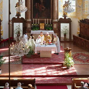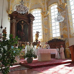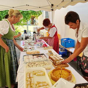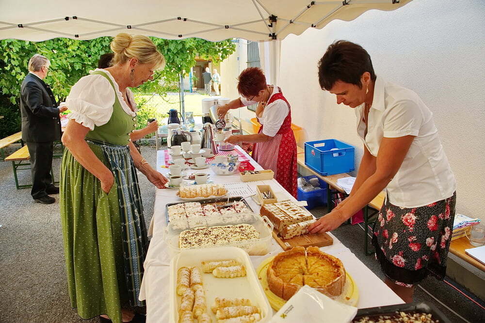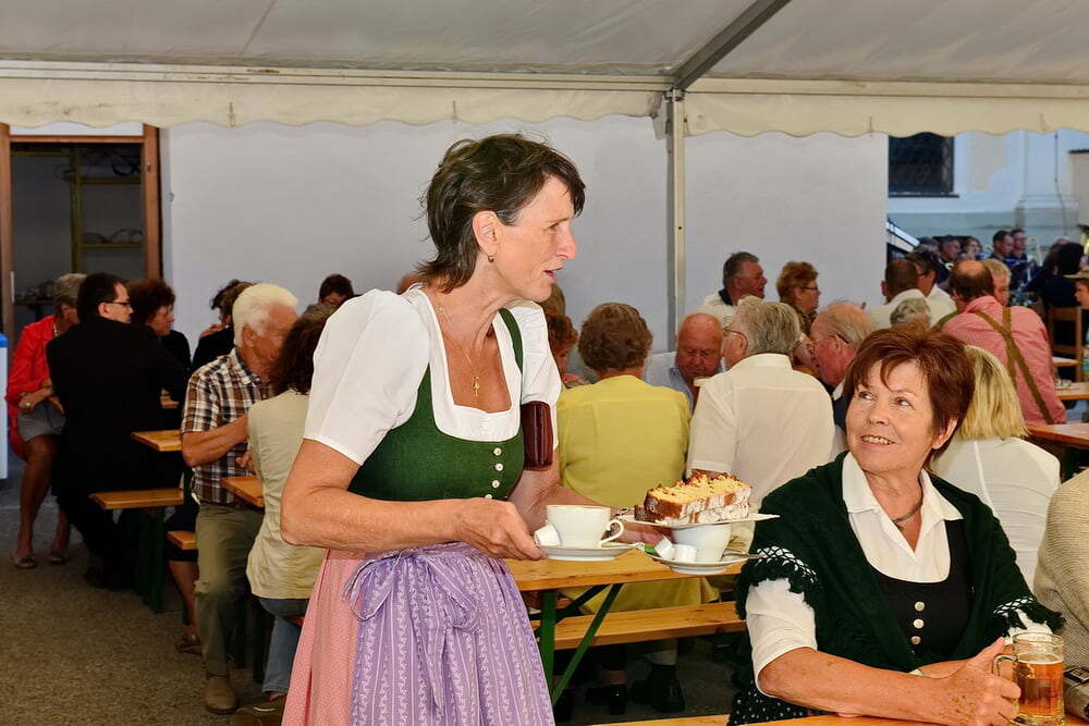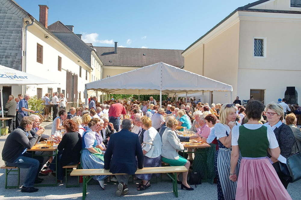 Im Anschluss konnte auf dem Klosterplatz, der dankenswerter Weise auch von den neuen Besitzern des ehemaligen Noviziates der Salesianer immer für pfarrliche Veranstaltungen zur Verfügung gestellt wird, wiederem der gewohnte Frühschoppen mit der Marktmusik Timelkam bei strahlendem Sonnenschein gefeiert werden.