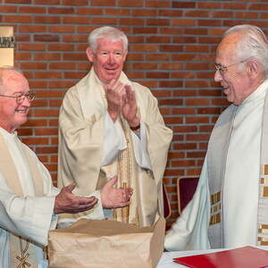 Heuer gratulierten Pfarrer Josef Kramer und Pfarrgemeinderatsobmann Alois Hangler unserem immer noch rüstigen Pater Franz Ruthofer, SDB, der sein 82. Lebensjahr demnächst vollendet, zu seinem 50-jährigen Priesterjubiläum.
