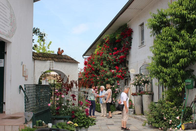 Am Vormittag stand eine Führung im Rosarium Gruber in Fraham/Eferding am Programm. Der rund 1.600 m² Rosengarten beherbergt über 400 Rosensorten! Am meisten faszinierten uns die Rambler-Rosen, die in die Bäume wachsen und sich von dort bis oben hin in ihrer ganzen Pracht präsentieren.