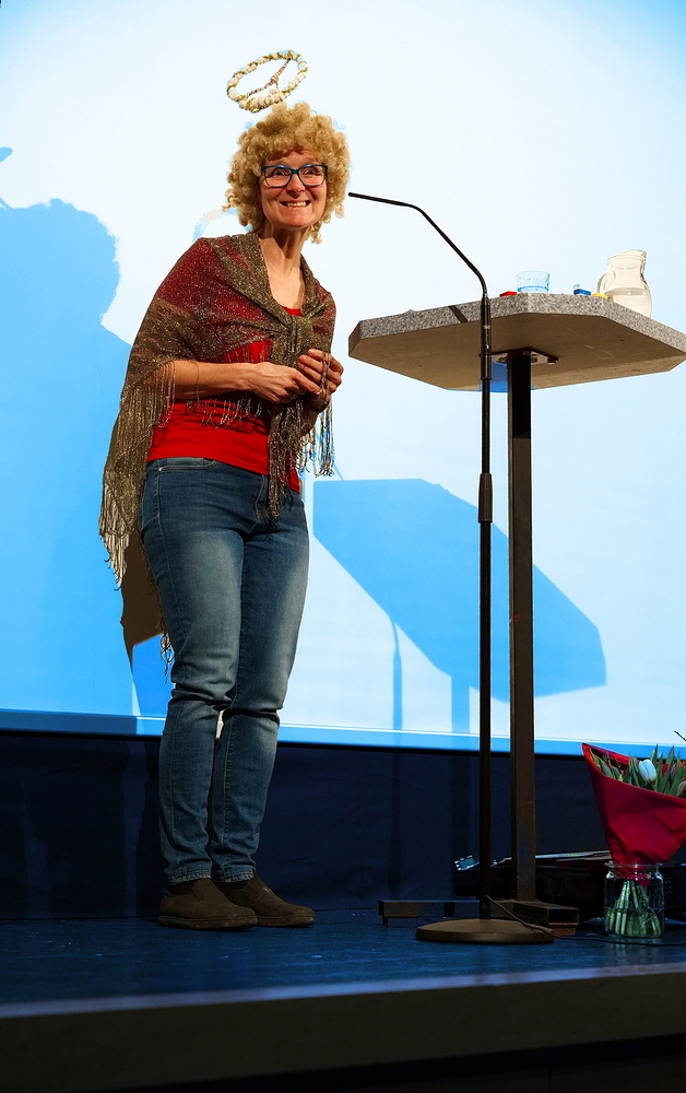 Vom Arztbesuch über den Himmel bis hinab zu Hölle spannte sie dabei den Bogen und bezog auch das Publikum mit in ihre Ausführungen und Lachgeschichten ein.