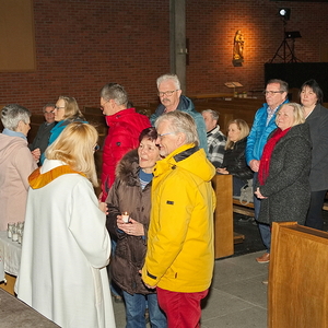 Die Besucher bedankten sich zum Schluss bei ihr mit „Standing Ovations“. Die Begeisterung über Segnung und Kabarett war bei den Besuchern auch beim gemütlichen Ausklang voll spürbar.