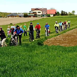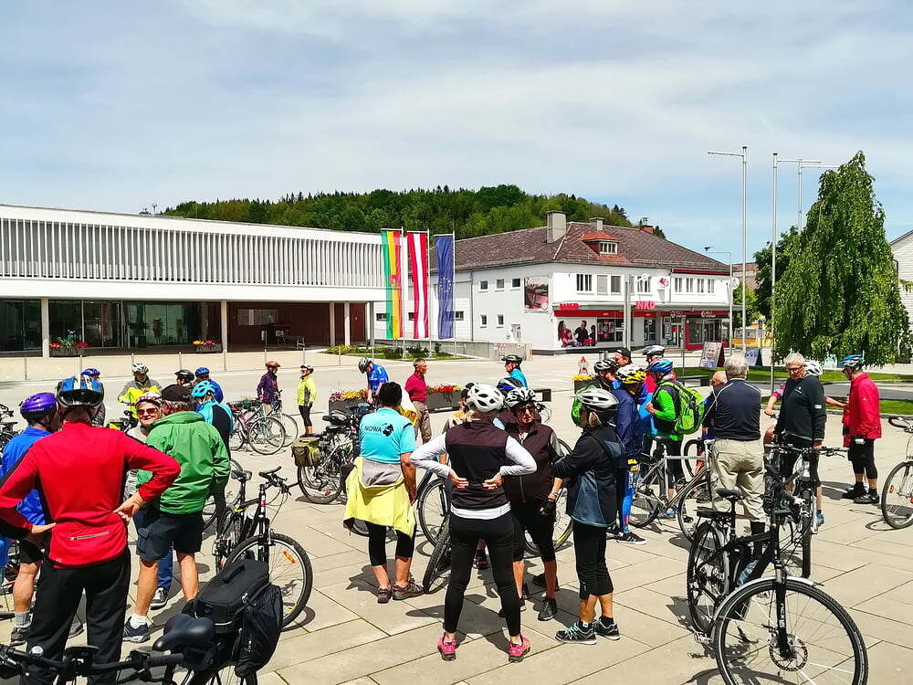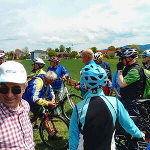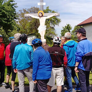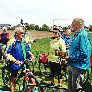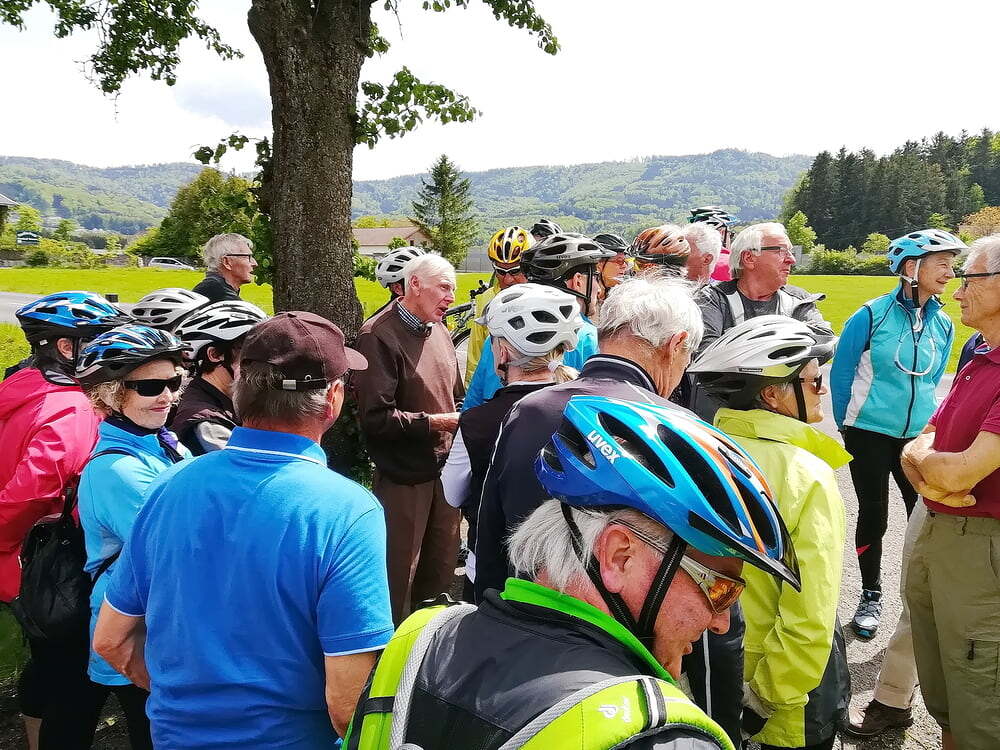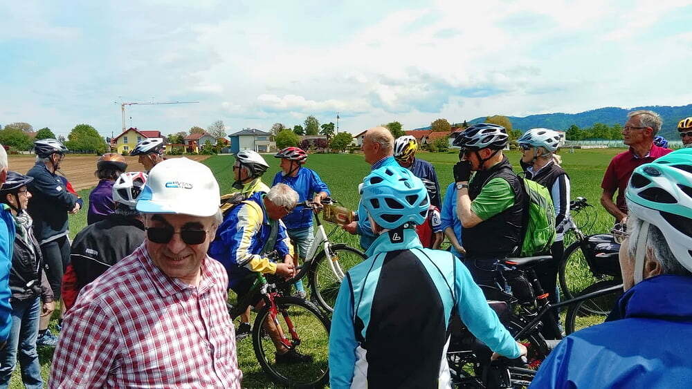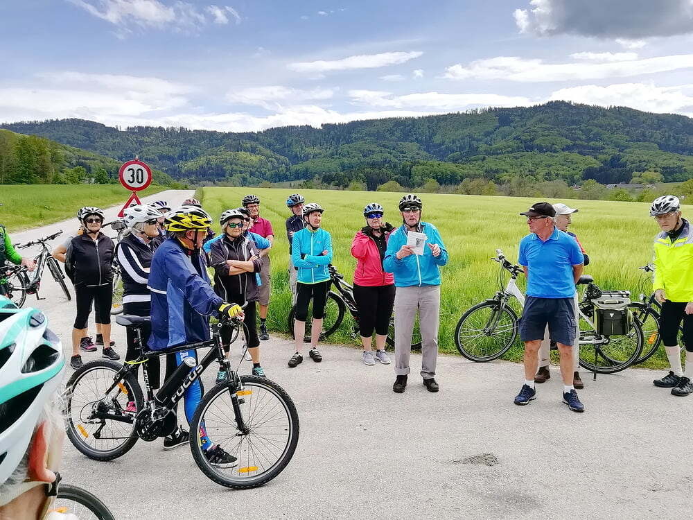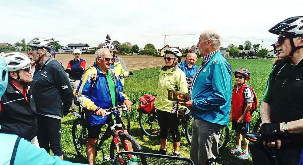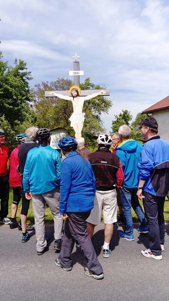 Etwa 40 Teilnehmer radelten bei gutem Radlwetter Richtung Aurach und sogar bis zum Hongar, um auch heuer wieder einige Kleinode zu besuchen. Darunter war auch das älteste Gebäude von Aurach am Hongar, eine Kapelle neben dem Kindergarten.