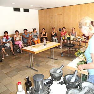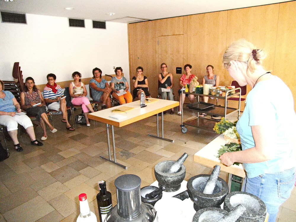 Eine kleine, sehr interessierte Gruppe trotzte dem schönen Wetter und verbrachte den Samstagnachmittag mit der Erweiterung des Wissens über die Kräuter und deren Verarbeitung.