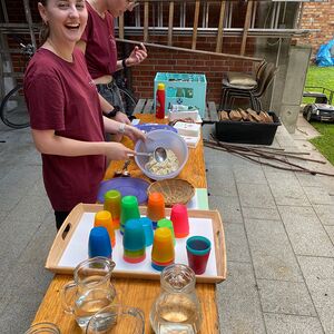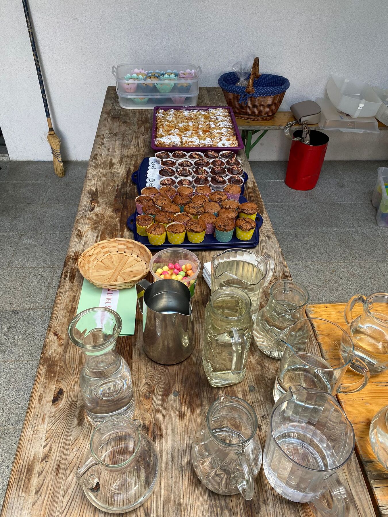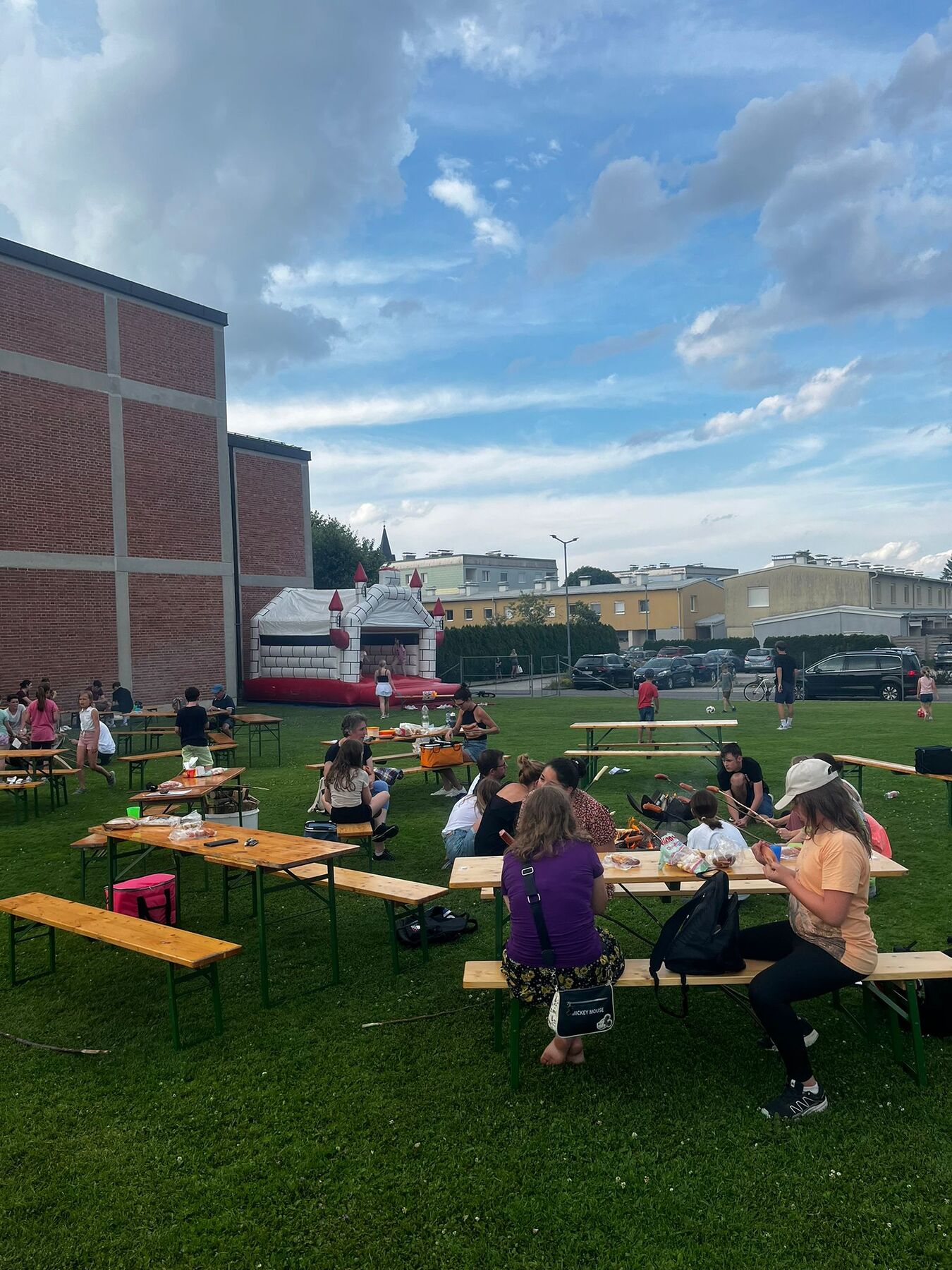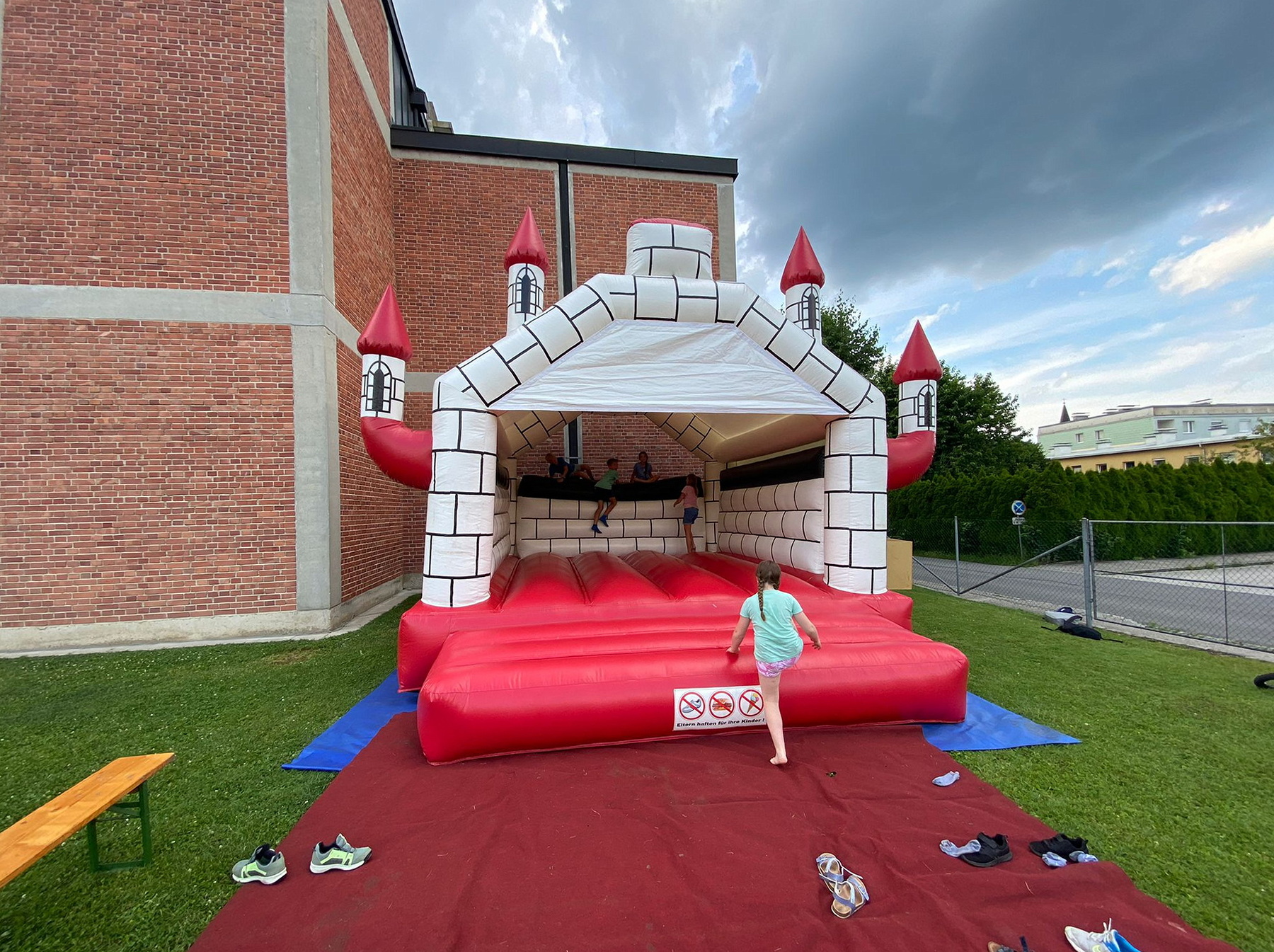 Es gab wieder verschiedene Stationen, wie zum Beispiel Saft-Pong, Soletti-Wettessen, Fußball, Schwedenbomben-Schleuder und viele mehr, die die Kinder bespielen konnten. Auch die Hüpfburg war aufgebaut.