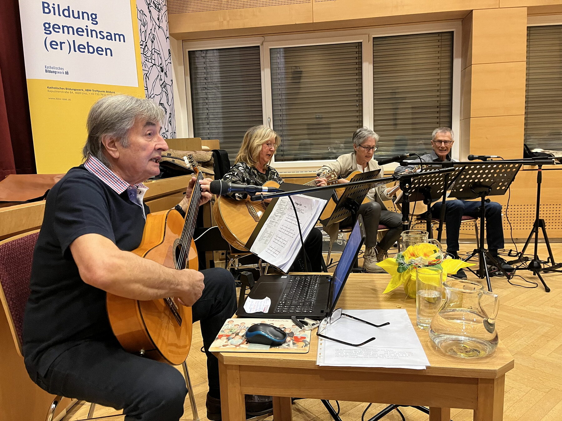Im Anschluss an die Segensfeier begann das Abendprogramm, das von Gerhard Teml und seiner Gitarrengruppe musikalisch begleitet wurde. Die humorvollen Darbietungen sorgten für viele Lacher und eine ausgelassene Stimmung im Publikum.