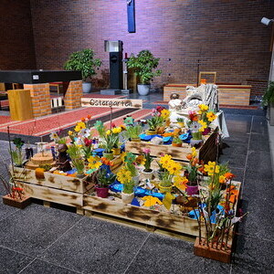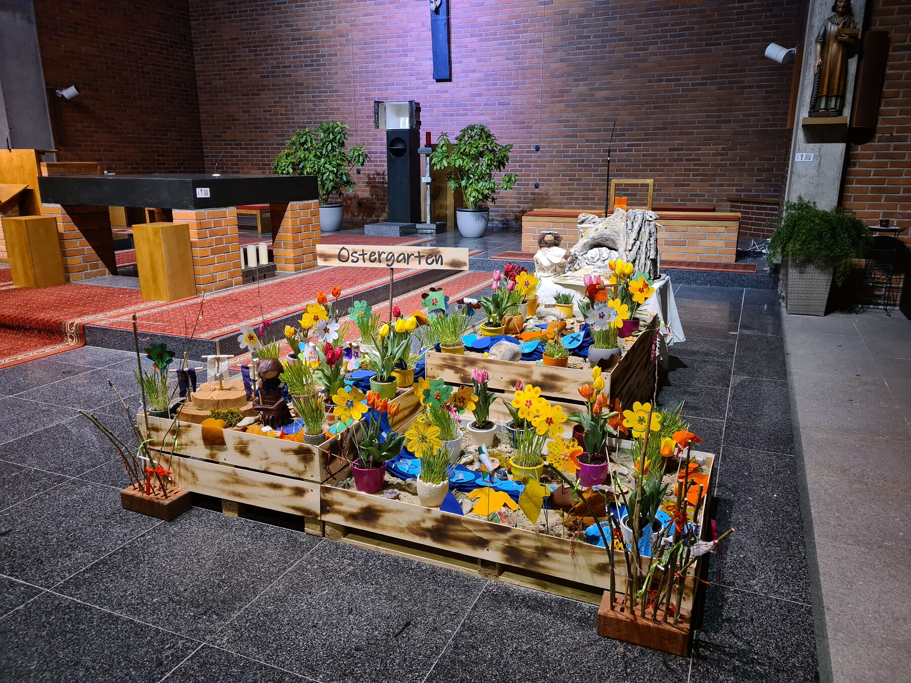 Und so ist auch unser Ostergarten ein schönes Zeichen dafür, was mit Geduld, Liebe, Fürsorge, Licht, Wasser und Sonnenschein entstehen kann. Ein herzliches Dankeschön an alle, die mitgeholfen haben!