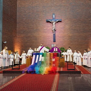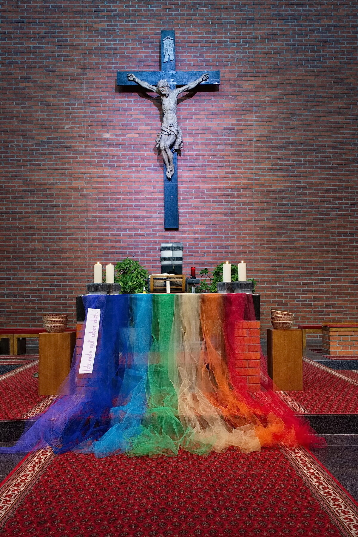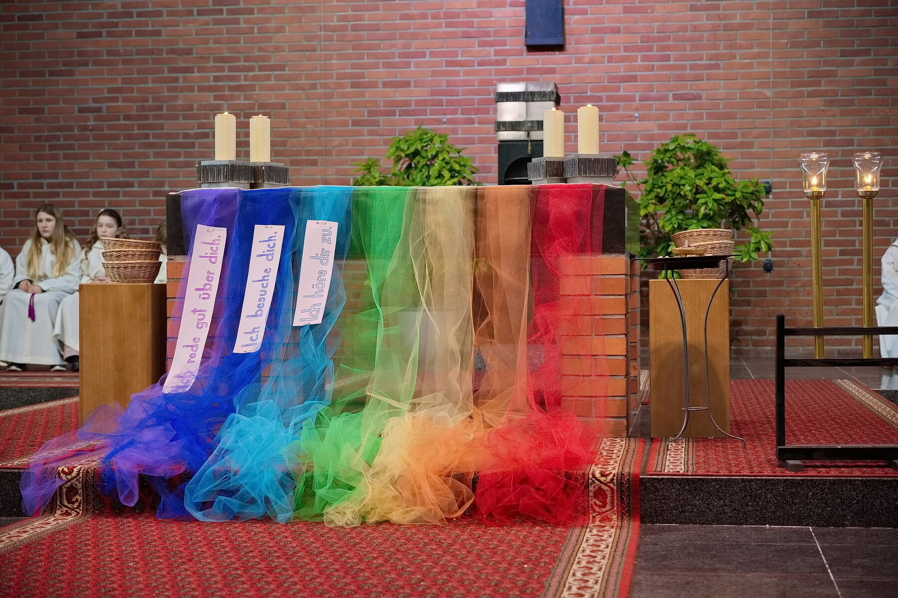 Jeder Sonntag der Fastenzeit war einer Farbe des Regenbogens gewidmet. Verbunden damit stand jeweils ein Satz der Barmherzigkeit im Mittelpunkt, der uns einlud, unser Miteinander bewusster, achtsamer und liebevoller zu gestalten. So begleiteten uns durch die Wochen Impulse wie: „Ich rede gut über dich“, „Ich besuche dich“, „Ich höre dir zu“, „Ich teile mit dir“, „Ich gehe ein Stück mit dir“ und „Ich bete für dich“.