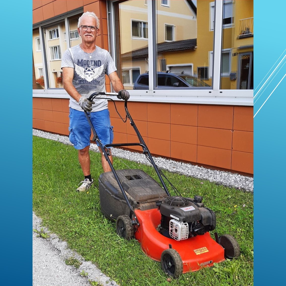 Für den regelmäßigen Rasenschnitt auf der Pfarrwiese und rund um die Kirche sorgt Gerhard Seemayr.