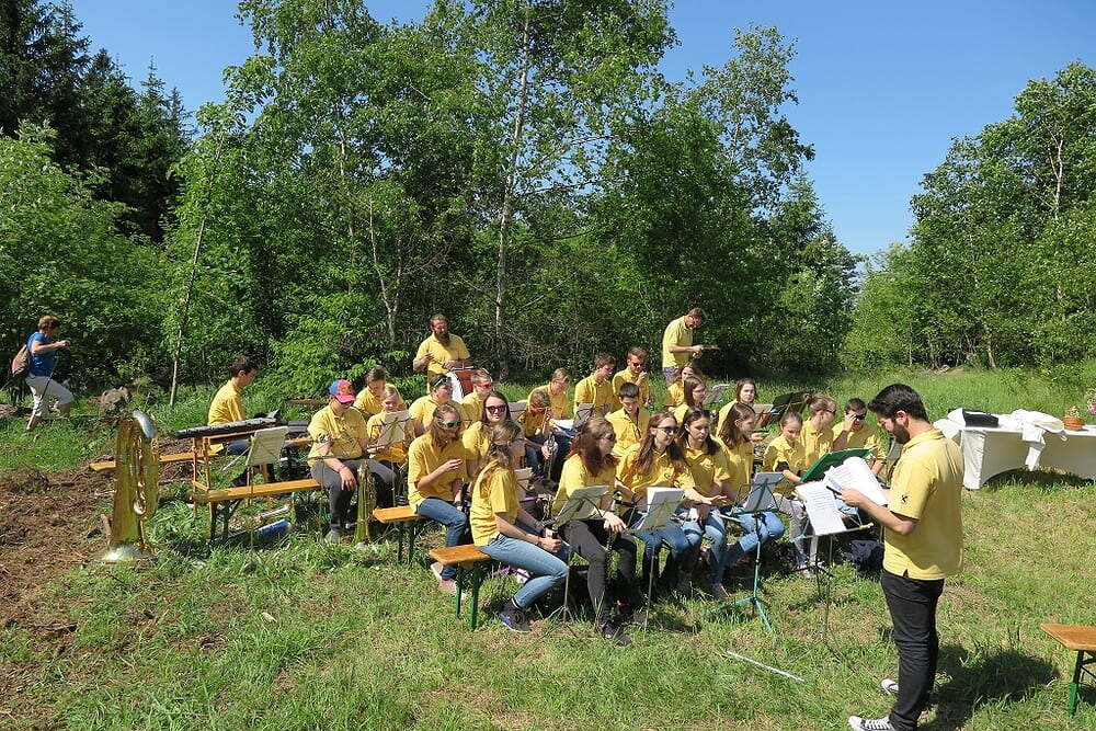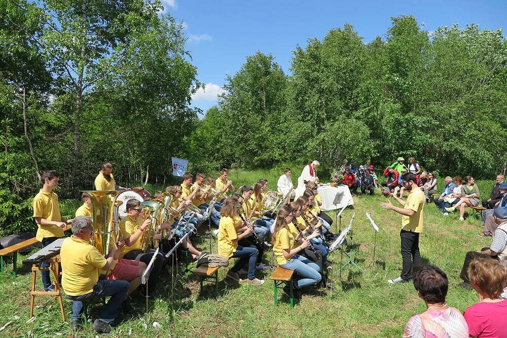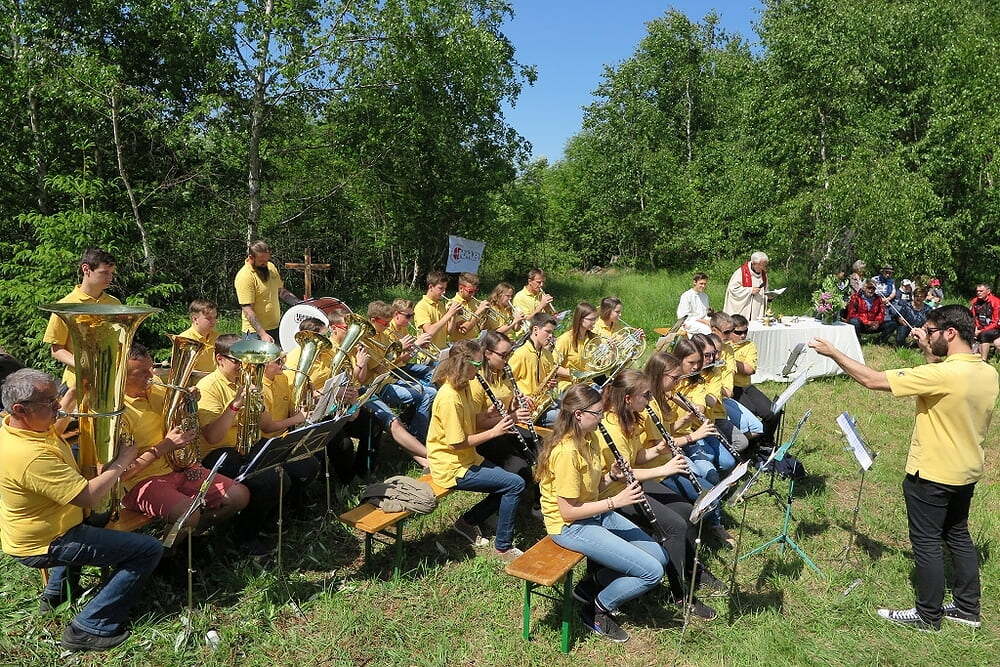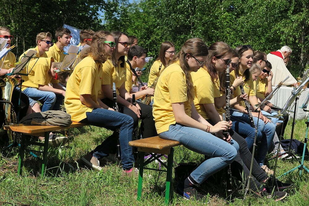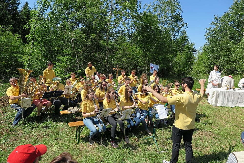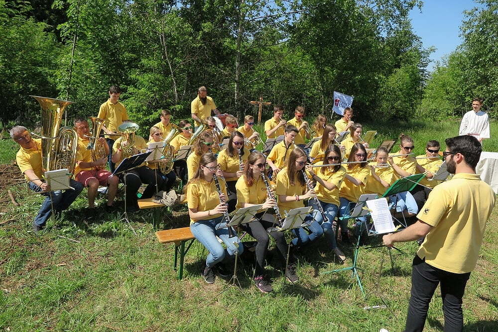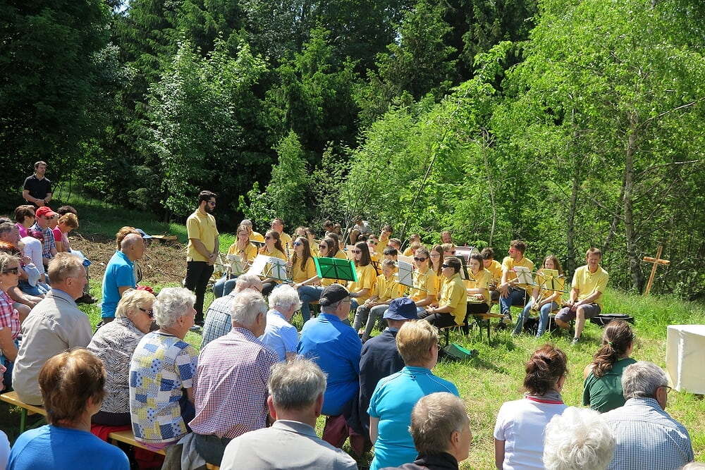 Eine große Anzahl von Katholiken aus den umliegenden Orten nutzte den wunderschönen Tag um zu den Klängen der Jungmusiker Traberg gemeinsam mit Pater Meinrad die Messe zu feiern.