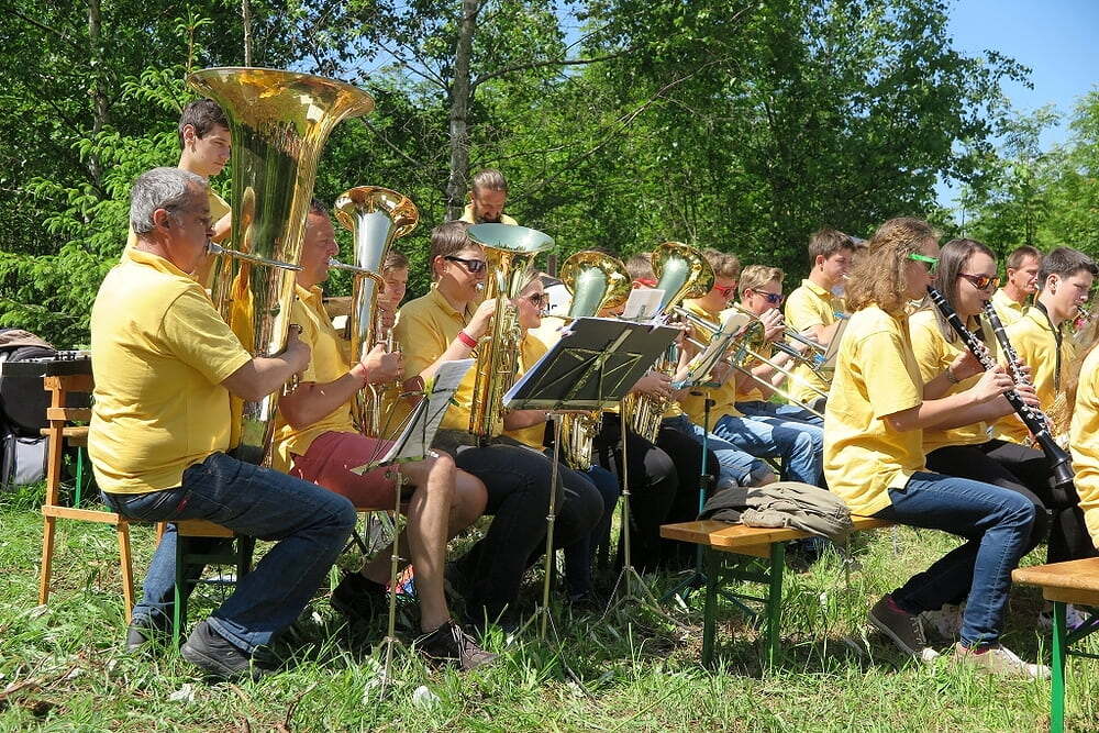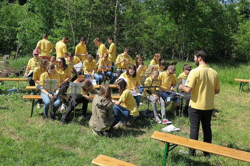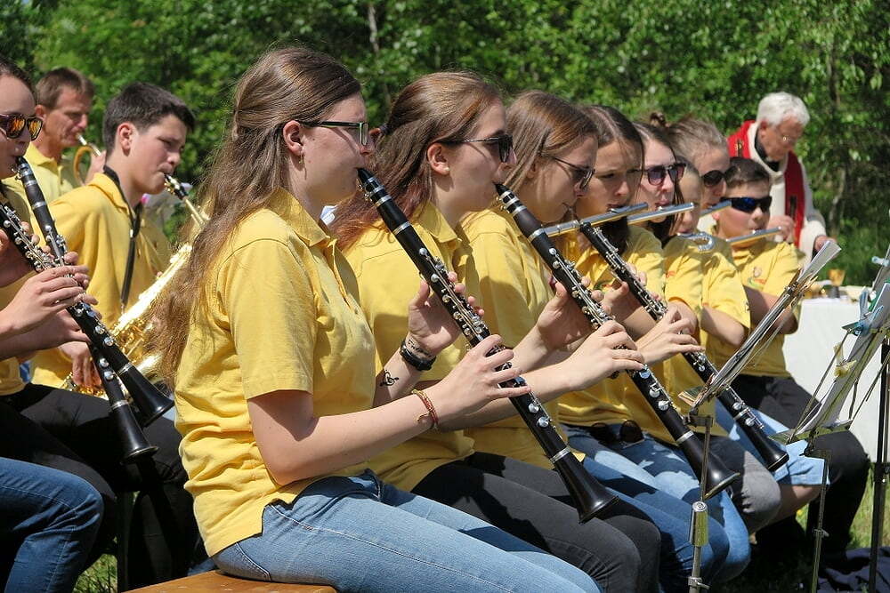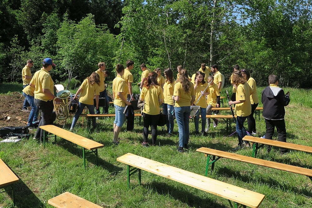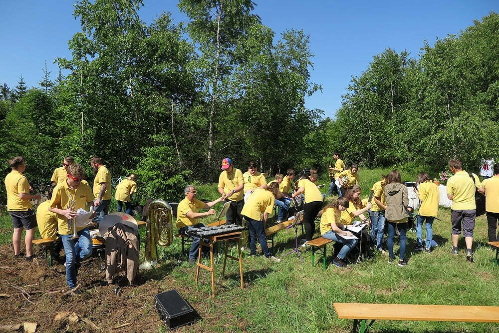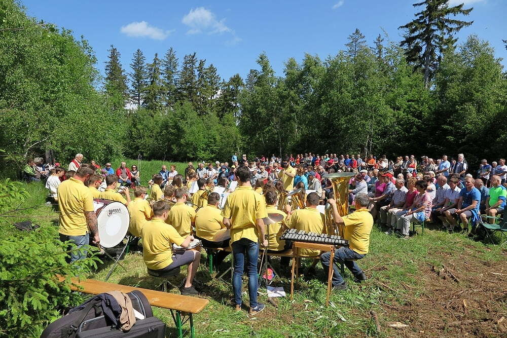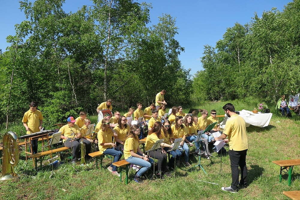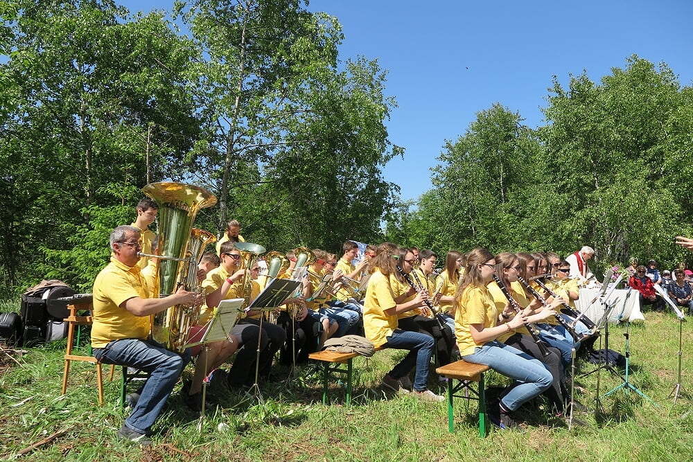 Eine große Anzahl von Katholiken aus den umliegenden Orten nutzte den wunderschönen Tag um zu den Klängen der Jungmusiker Traberg gemeinsam mit Pater Meinrad die Messe zu feiern.