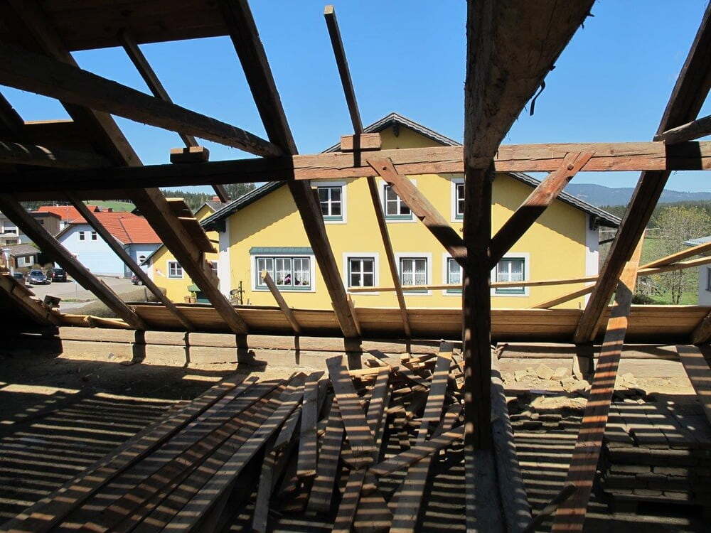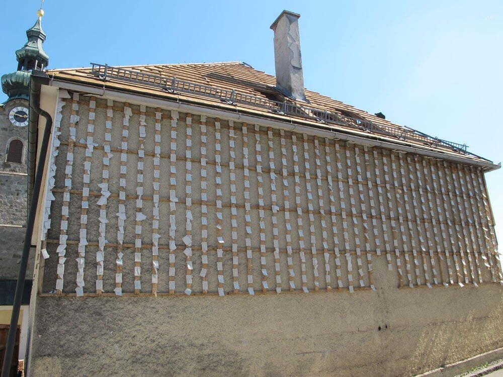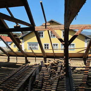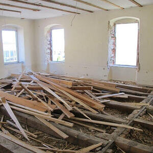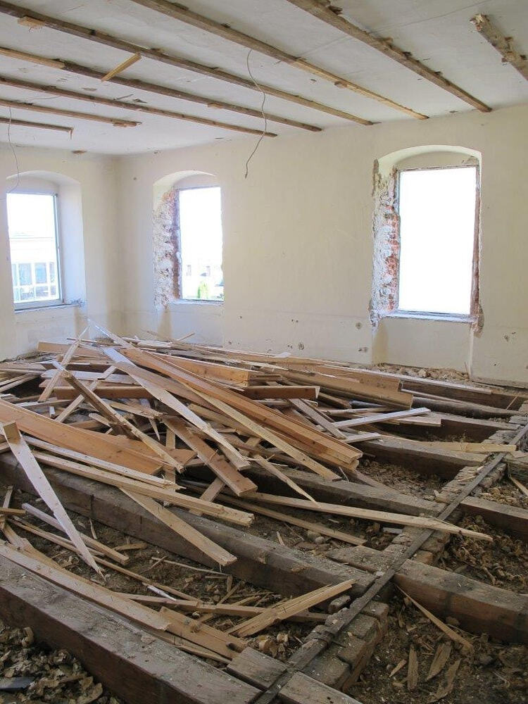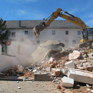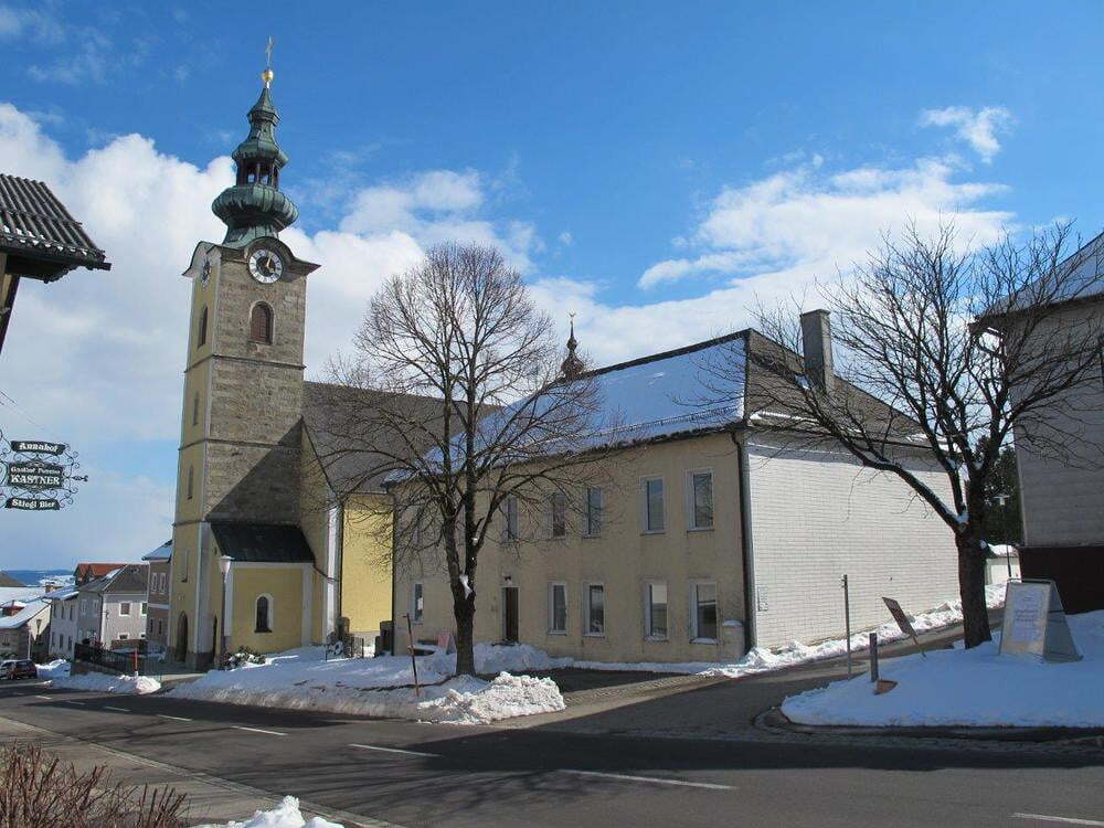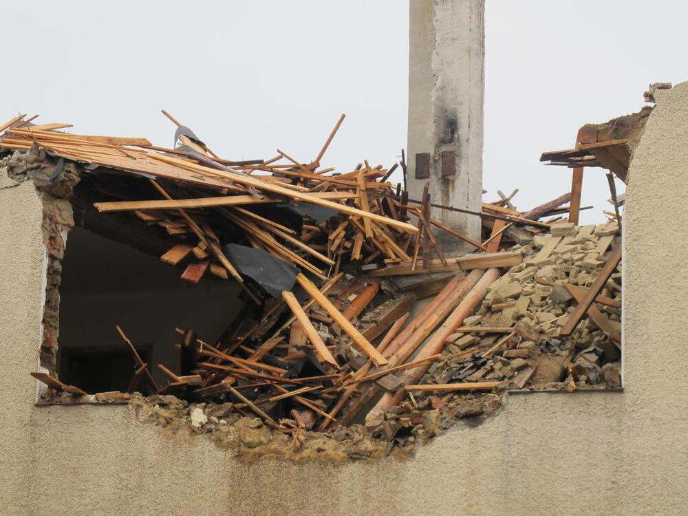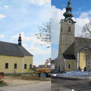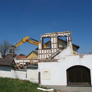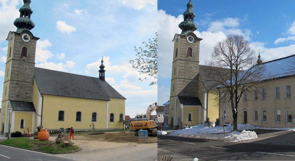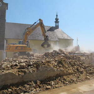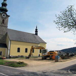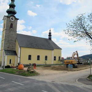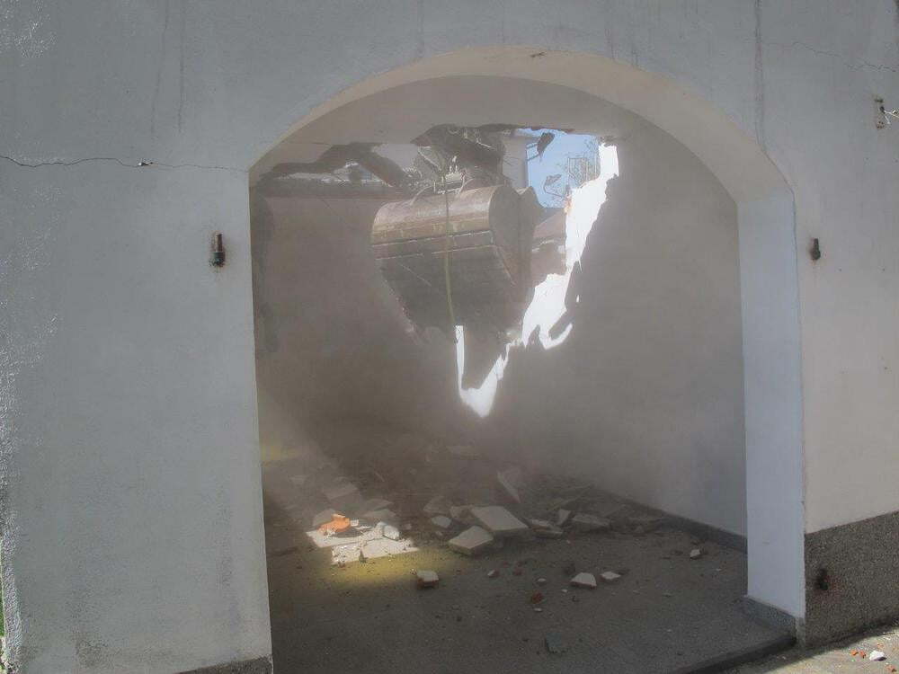 Das alte Schulgebäude und die Aufbahrungshalle muss für den Neubau der Aussegnungshalle und dem neuen Ortsplatz weichen.