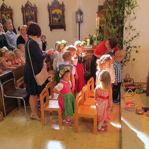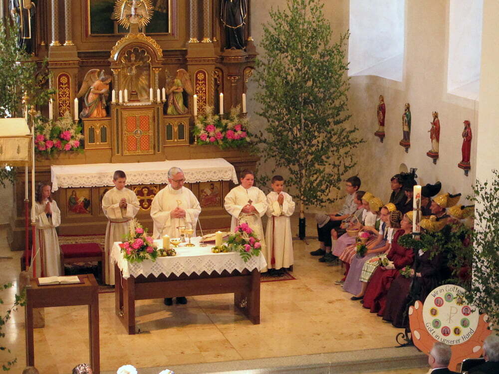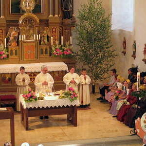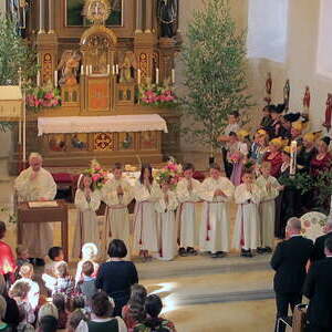 Die Fronleichnamsprozession mit P. Christian war sehr feierlich. Ein Fest bei herrlichem Wetter.
