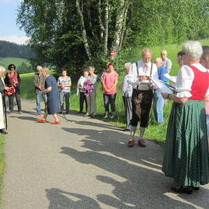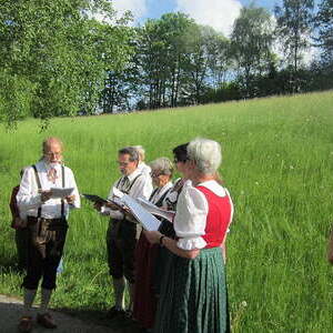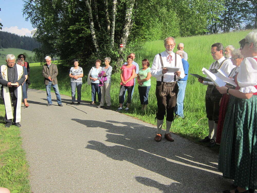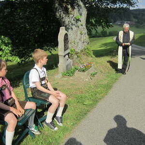 Bei einer feierlichen Maiandacht wurde der Bildstock von P. Meinrad gesegnet. Die musikalische Umrahmung gestaltete eine kleine Gruppe des Kirchenchors Traberg.