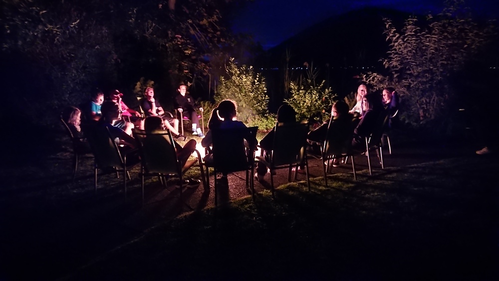 Mit dem Boot ging es dann über den See zu unserem Lagerplatz, wo wir nach gemütlichen Grillen und Lagerfeuer eine lustige Nacht im Zelt verbrachten.
