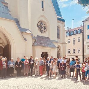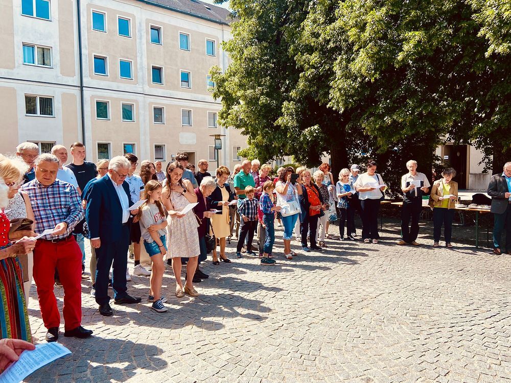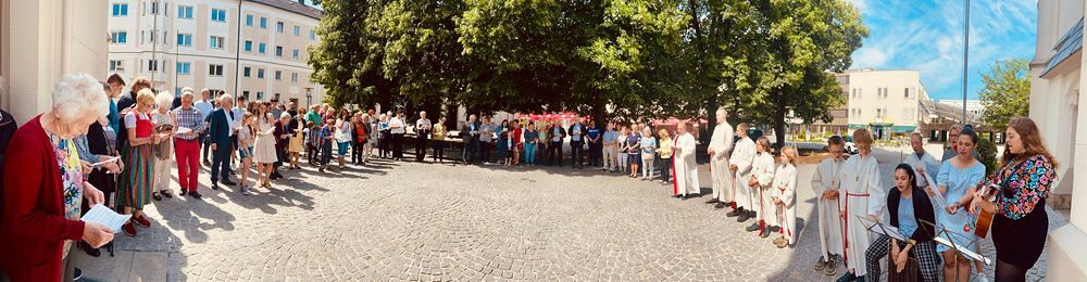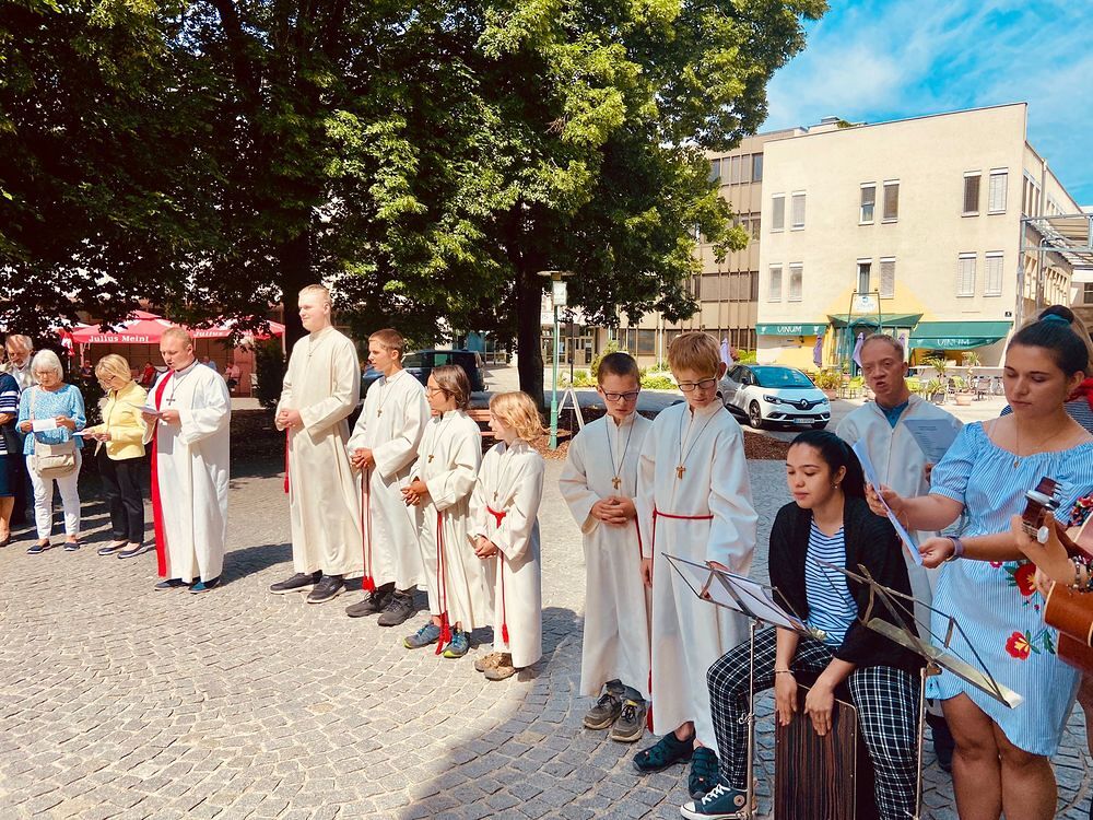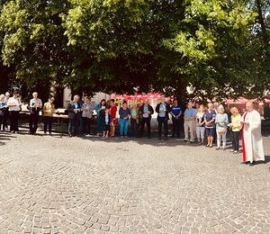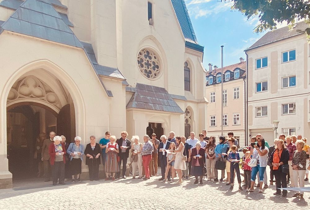 Weil Pfingsten auch bewegt, hinaus zu gehen und die Botschaft zu verkünden, endete unser Gottesdienst gemeinsam am Kirchenplatz mit anschließender Agape.