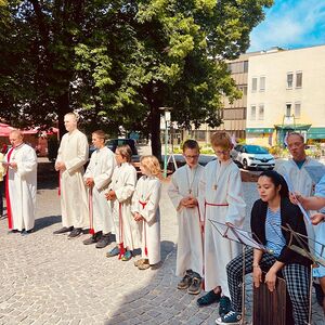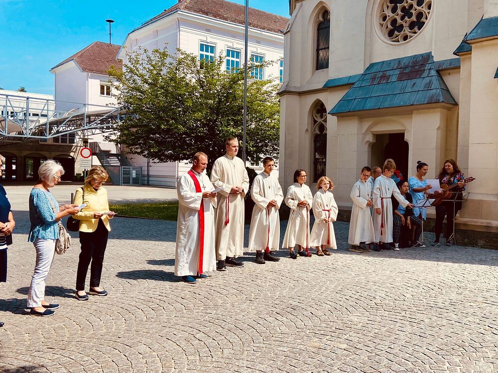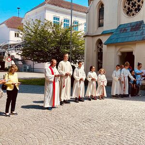 Dass der Geist von Pfingsten anwesend war zeigten die freudigen Gesichter der Mitfeiernden genauso, wie der starke Wind, der am Kirchenplatz so manches Feststehende ins Wanken brachte und Flügel verlieh.