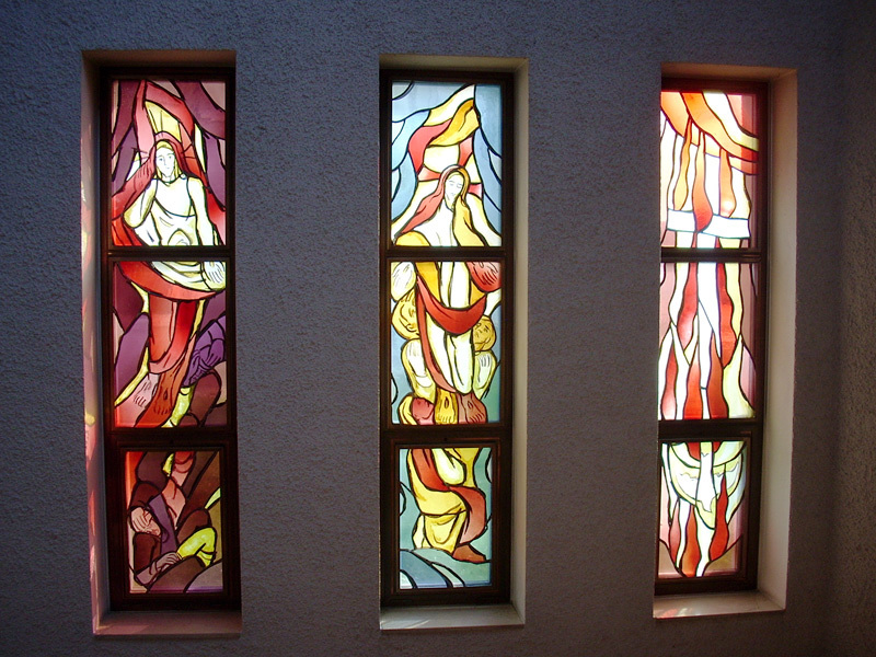 Die Glasfenster vom Braunauer Prof. Hans Plank und der Taufbrunnen von Prof. Peter Dimmel aus Linz geben jeder Taufe den feierlichen Rahmen.