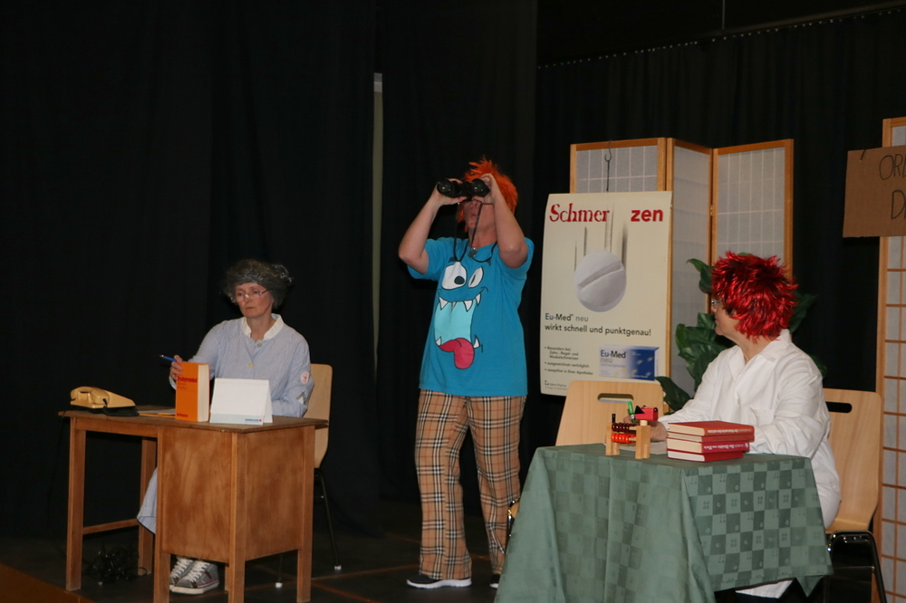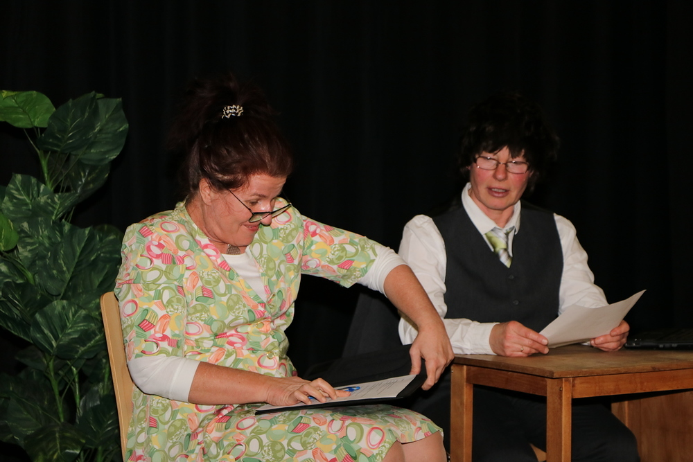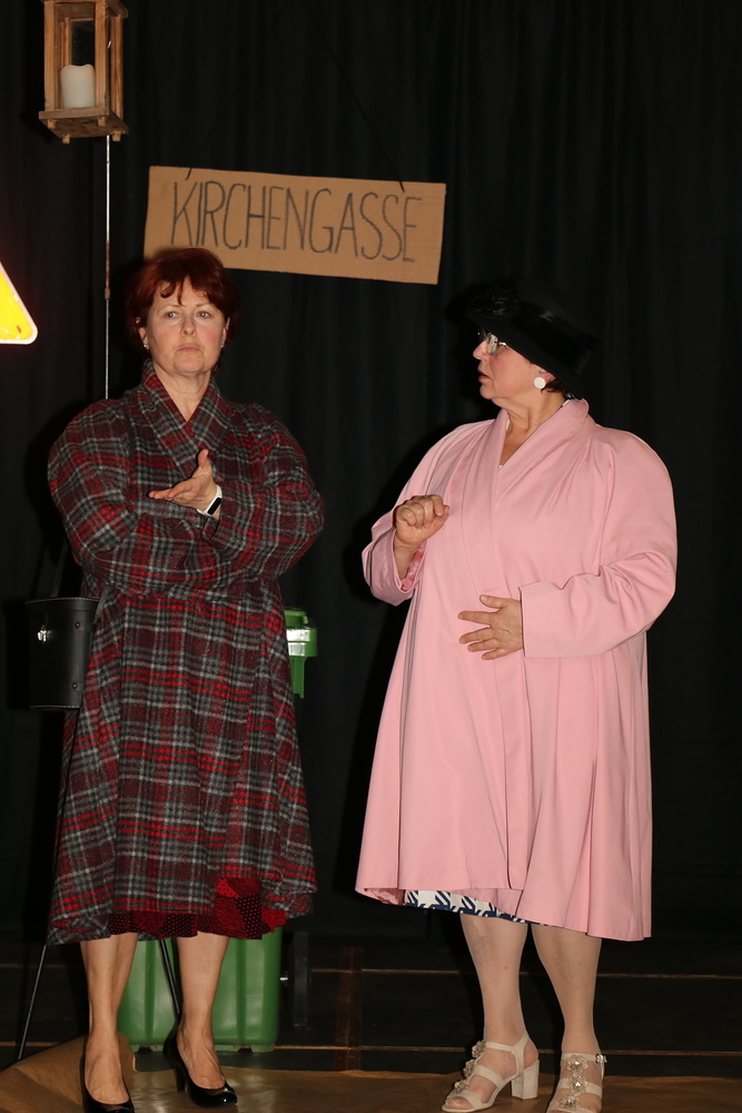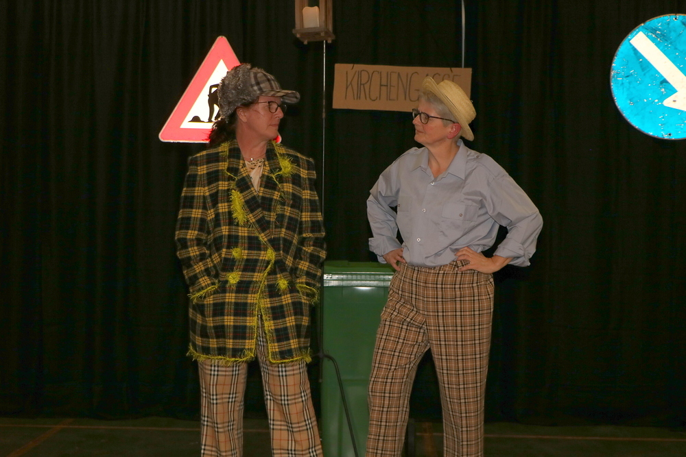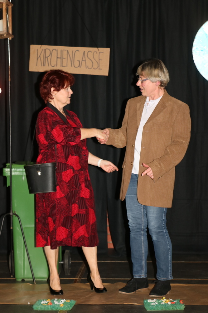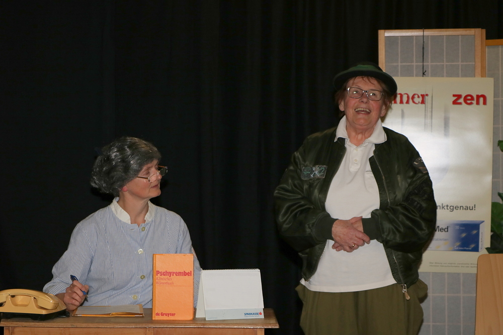 Die 7 Spielerinnen zeigten Stücke und Sketche zum Thema Gehen, die lustig und witzig waren und den Abend kurzweilig gestalteten. Die Umbauphasen auf der Bühne wurden vom Publikum mit zwei Akkordeonspielerinnen genutzt um gemeinsam als Chor zu singen. In der großen Pause gab es die Möglichkeit Sekt und selbstgebackene Germteig- und Strudelspezialitäten, ob süß oder pikant, zu kaufen.
