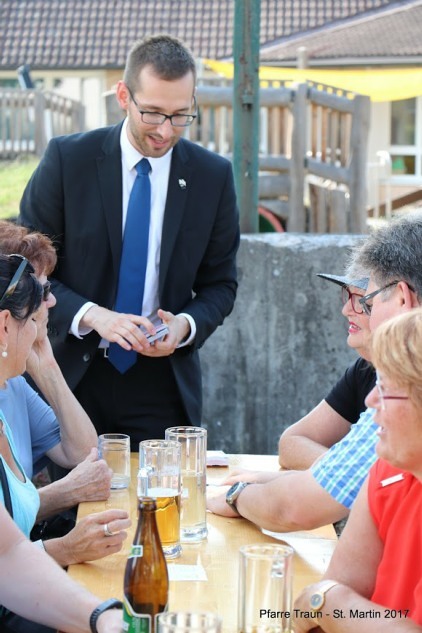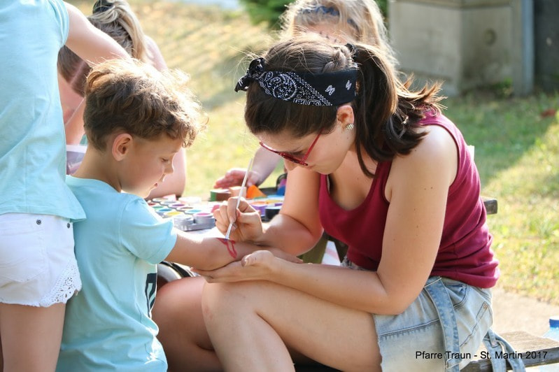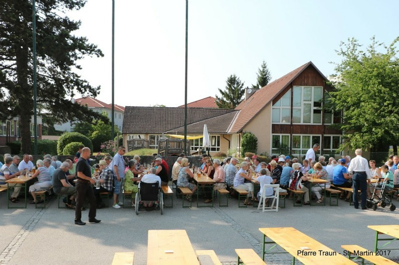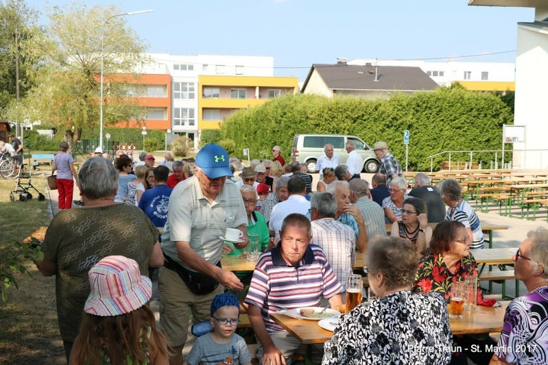 Um 16.00 Uhr begann es mit einem Gottesdienst in der Kirche und um 17.00 Uhr war Pfarrfesteröffnung. In diesem Jahr hatten wir wunderschönes Wetter und kein Gewitter, so dass viele Gäste bis spät in den Abend gemütlich zusammensitzen und es sich gut gehen lassen konnten. Wie immer gab es Gegrilltes zu essen und Gutes zu trinken, Kaffee und Kuchen und Musik. Auch viele Kinder waren da, für die die Jungschar unserer Pfarre wieder ein besonderes Programm zusammengestellt hatte. Danke allen, die gekommen sind, danke allen, die für das Gelingen des Festes durch ihre Mitarbeit gesorgt haben. Dank sei auch der DSG-Union St. Martin gesagt für ihre Mitarbeit und gemeinsames Feiern.
