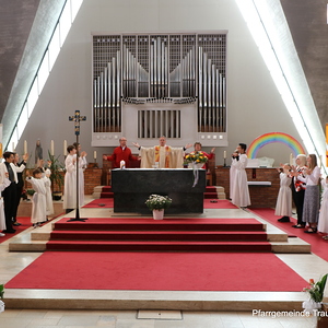 Am Sonntag, dem 28. April, feierten wir in unserer Pfarrgemeinde die Erstkommunion. Um 9.30 Uhr begleitete die Trachtenkapelle 6 Kinder unserer Volksschule feierlich in die Kirche. Dieses Jahr wurde die Vorbereitung zur Erstkommunion erstmals nicht mehr durch Tischmütter durchgeführt, sondern ein Team der Pfarrgemeinde bereitete die Kinder auf das große Fest vor. Gemeinsam gestalteten sie die Messe und durften anschließend zum ersten Mal die Heilige Kommunion empfangen. Nach der Feier wurden im Garten gemeinsame Fotos gemacht, und im HdB (Haus der Begegnung) genossen viele Kaffee und Kuchen beim Pfarrcafé.