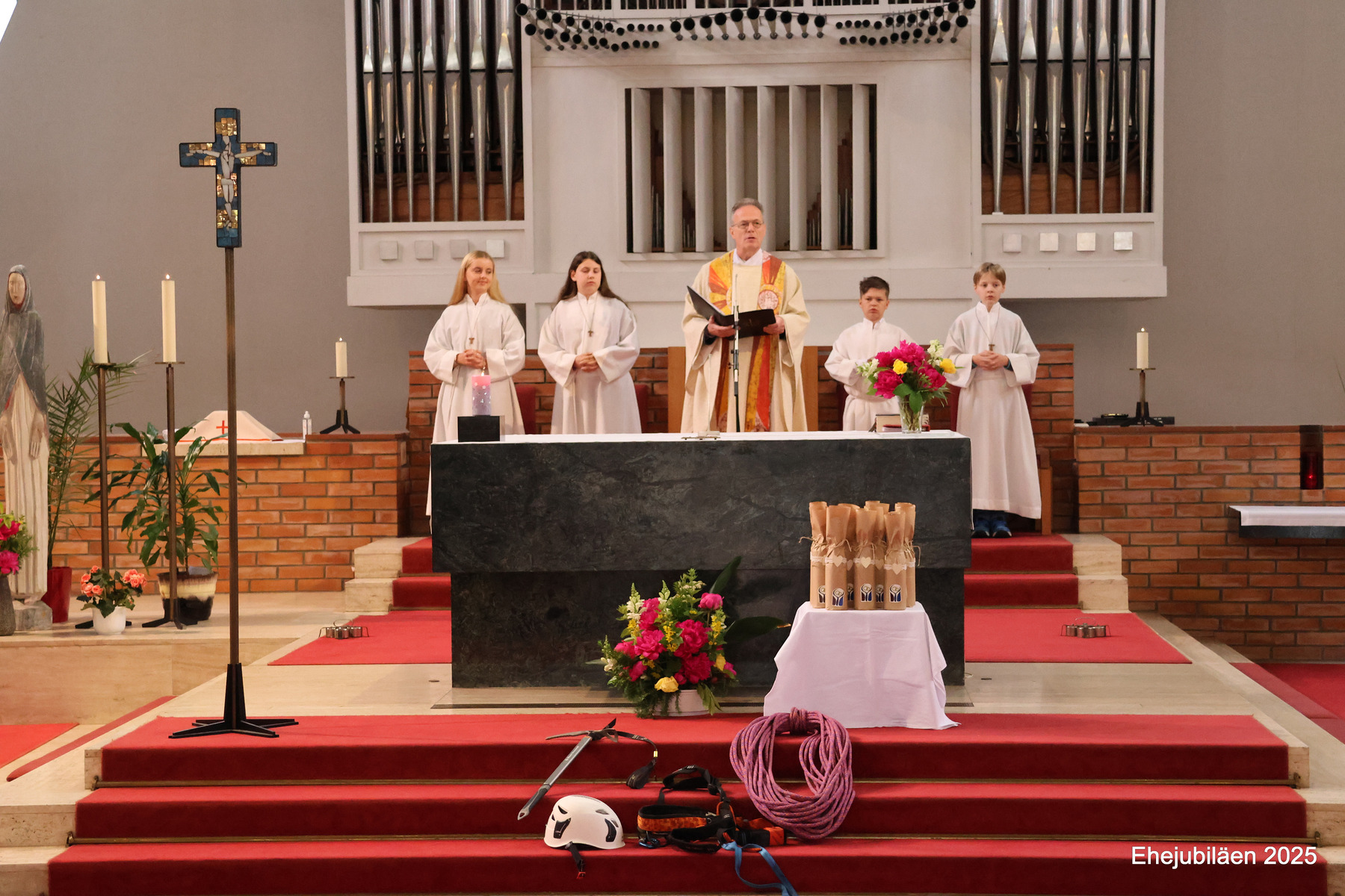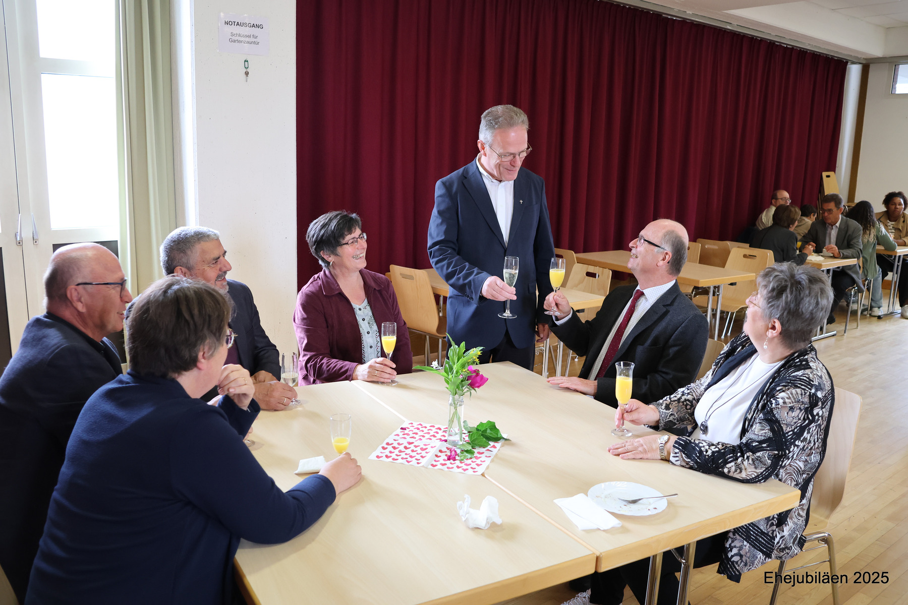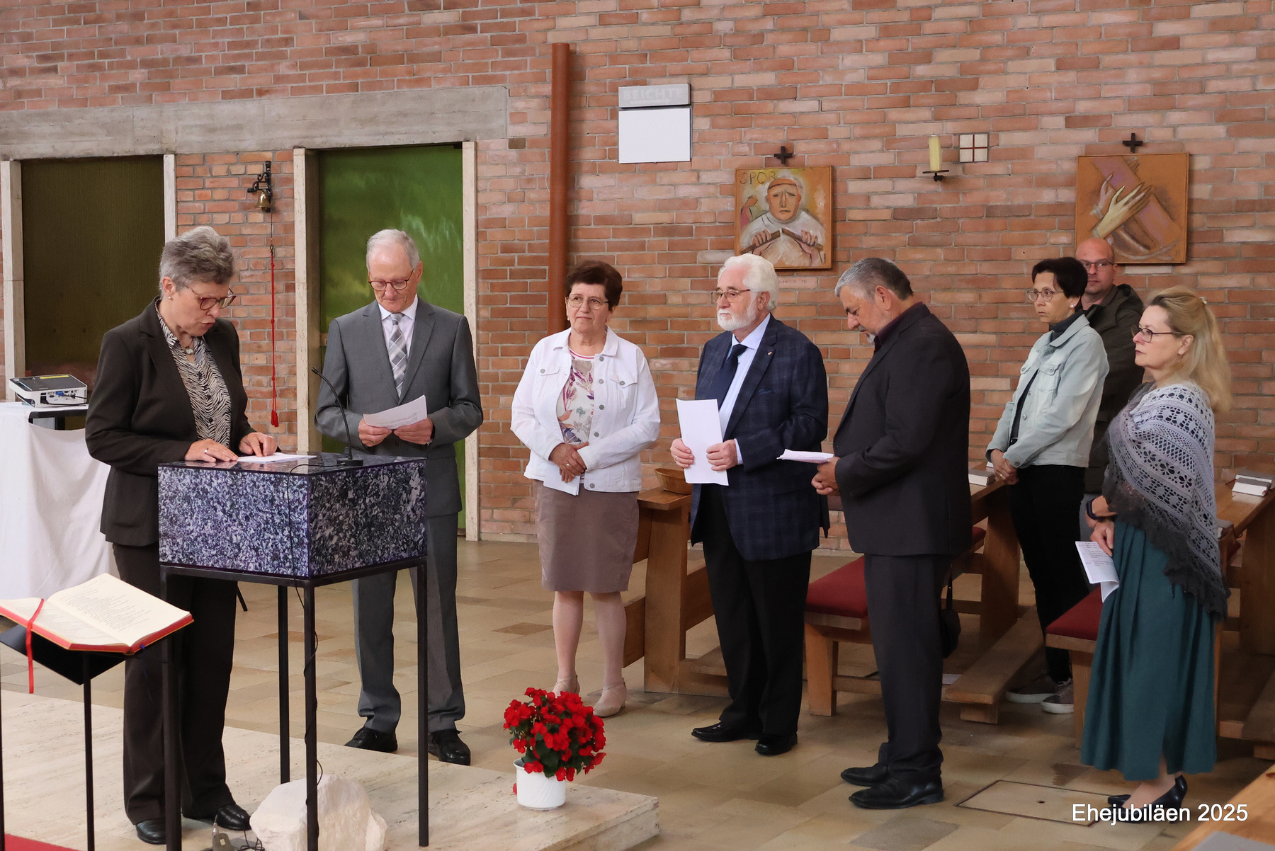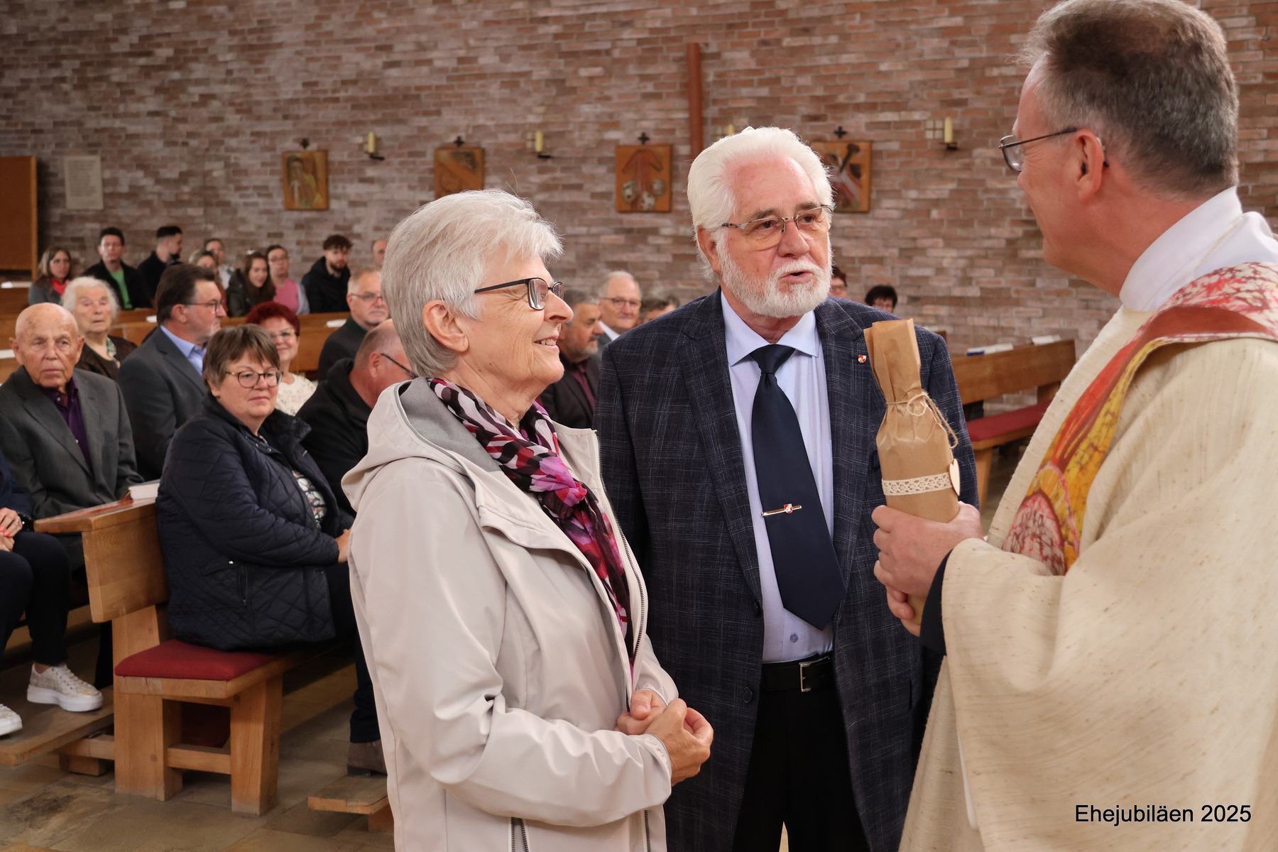 Am Sonntag, dem 25. Mai 2025, fand im Rahmen des Sonntagsgottesdienstes die Feier der Ehejubilare statt. Fünfzehn Paare, die ihr Ehejubiläum zwischen 30 und 65 Jahren feierten, nahmen daran teil. Das "Rezept" für ihre vielen gemeinsamen Jahre wurde durch die folgende Geschichte verdeutlicht:
