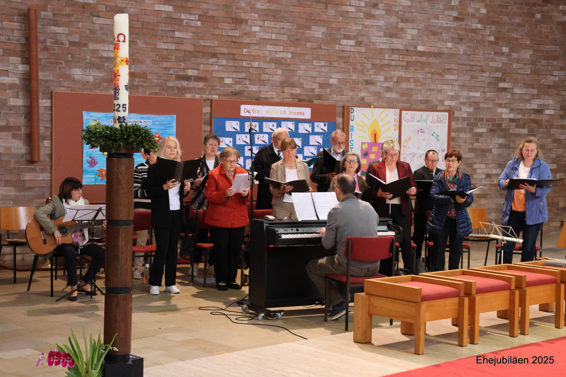 Die musikalische Gestaltung der Messe übernahm der Singkreis. Im Anschluss gab es im HdB ein Pfarrcafé und für die Jubilare sowie deren Angehörige einen Sektempfang. So fand die Ehejubiläumsfeier einen gemütlichen Ausklang.